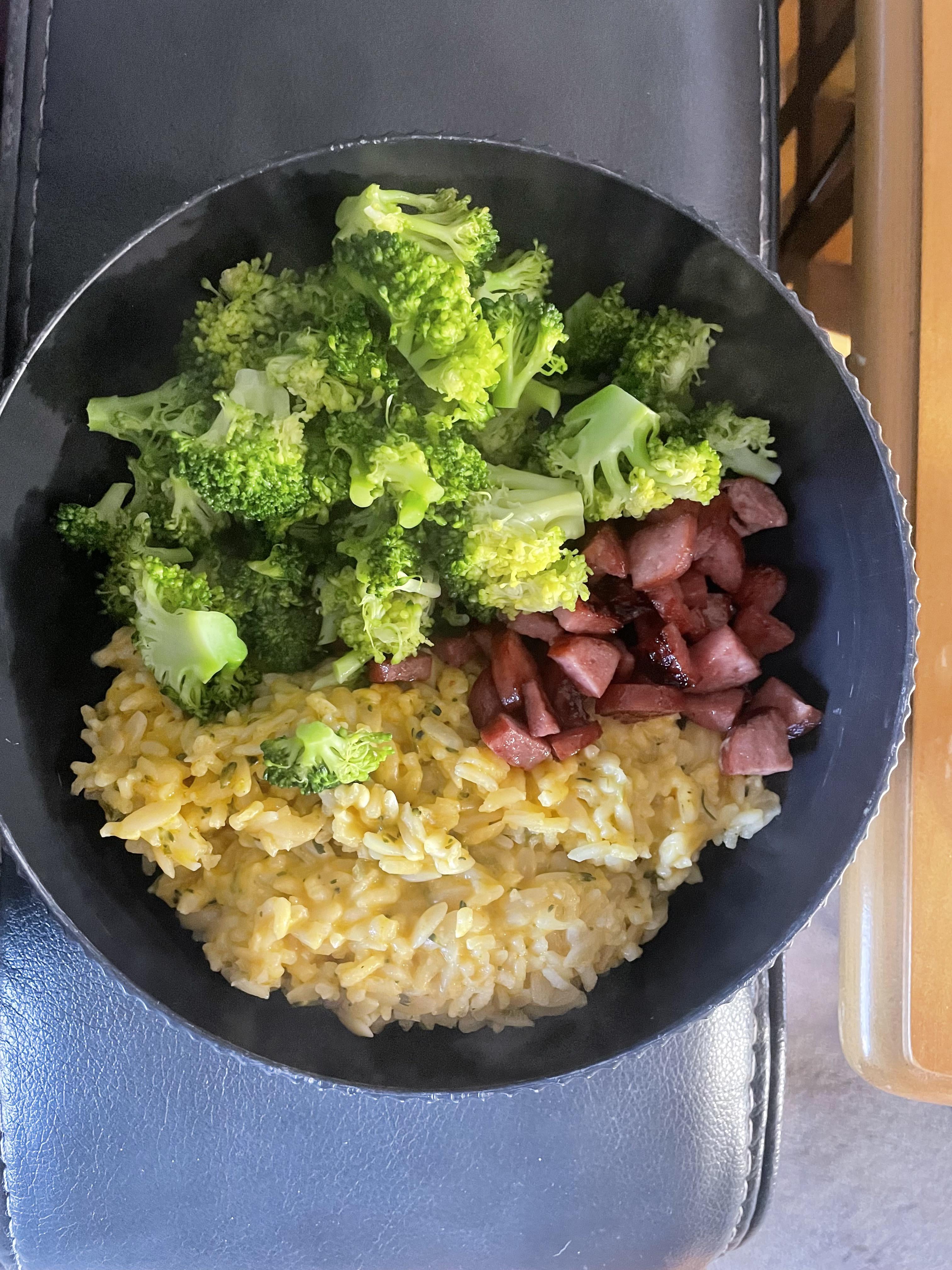 Broccoli cheddar rice-a-roni, steamed broccoli, crispy smoked sausage by jrkessle Dinner Tonight Tonight's Dinner