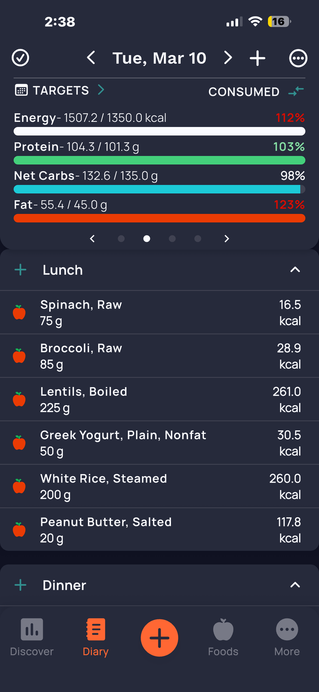 lunch: simple non sweet* lunch that is nice. *greek yogurt + peanut butter (melted) can make a somewhat okay sauce that goes over it if you are into that. or just eat the pb straight up and use the greek yogurt to make the meal less dry or tangy (lentils, rice, spinach, broccoli, etc)