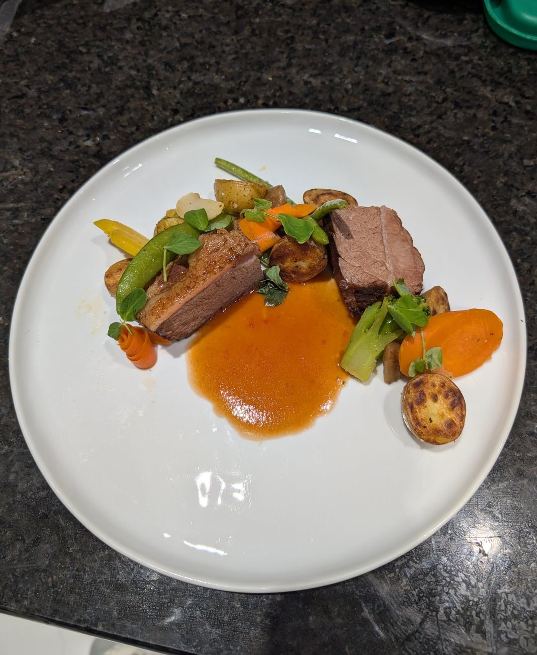 Third time playing around with plating. I keep getting roasted here, but I hope this one is better. I feel like I'm missing something to add on top. Thoughts? by NoelleAndCats Culinary Culinary Plating
