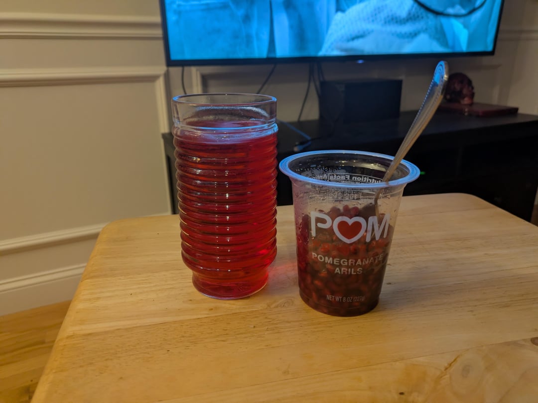 Snacks – pomegranate seeds with cranberry juice