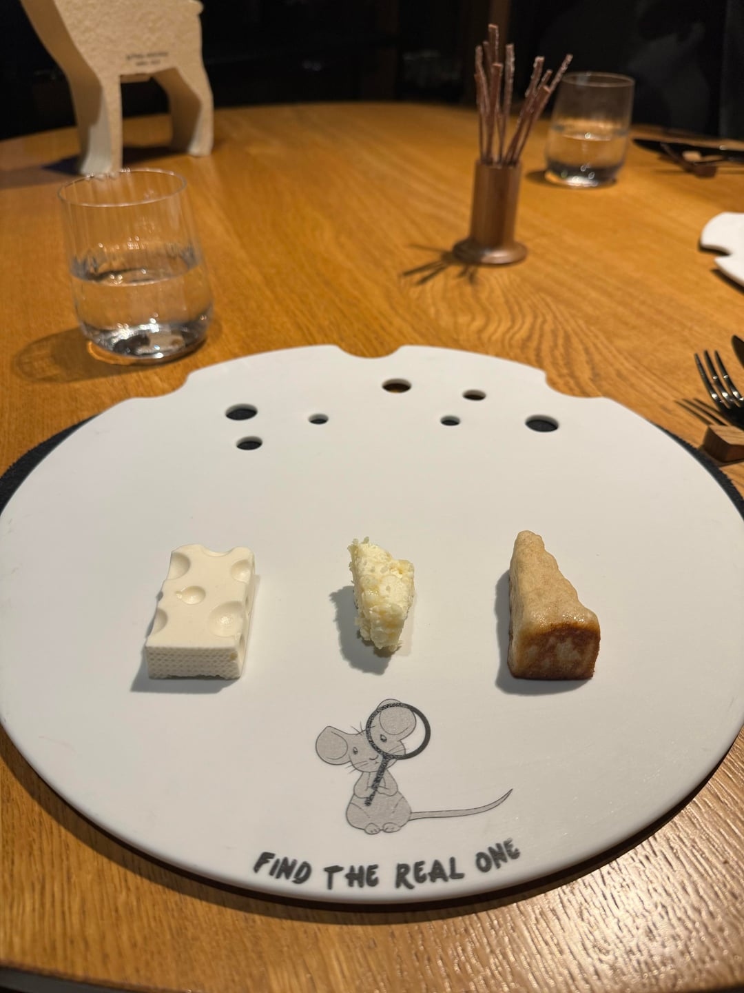 Really funky cheese course before dessert, this was a phenomenal restaurant, 4 hours dining the chef came out to greet us and talk, offered us a slice of his panettone with vanilla ice cream if we weren't too full