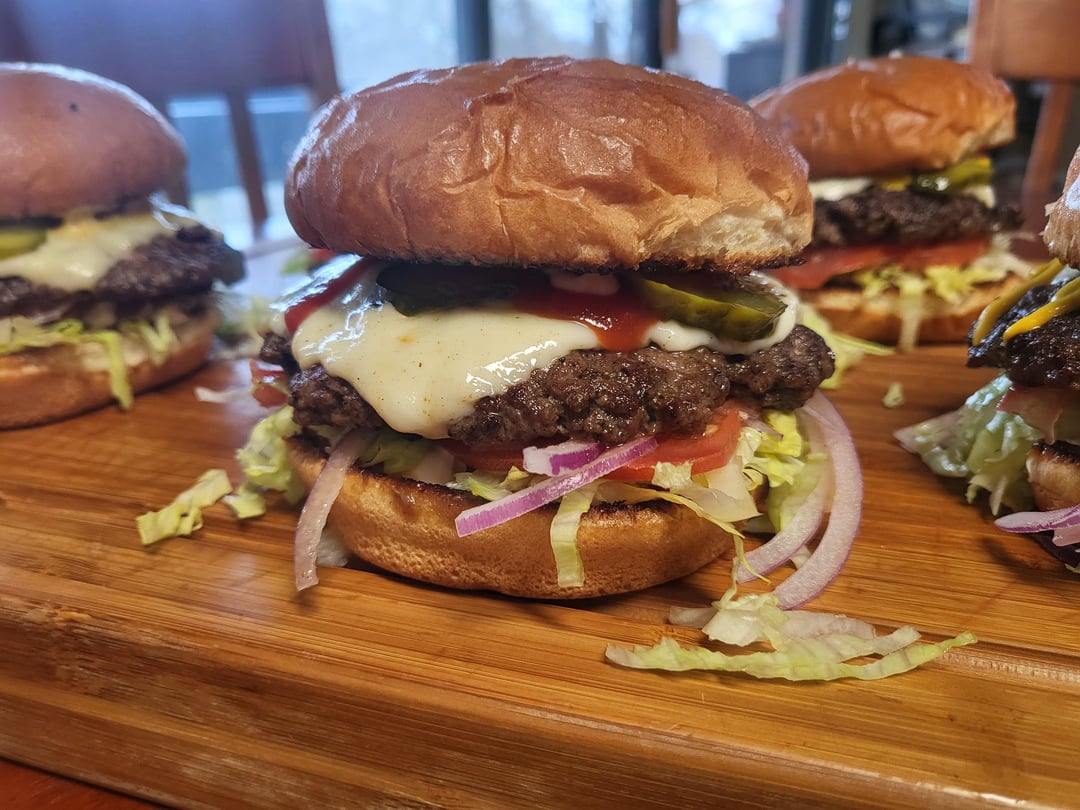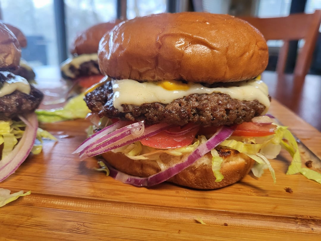 Loaded taco bowl, chopped cabbage, roasted sweet potato, ground beef taco meat, guacamole, sour cream and pico de gallo