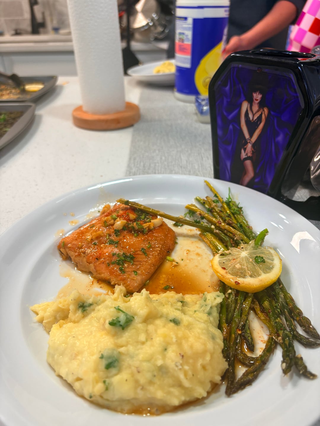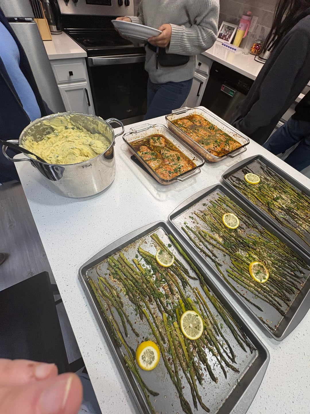 Made myself (and 12 other people) a nice dinner of asparagus, honey garlic salmon, and Parmesan mashed potatoes! It was a big hit![homemade]