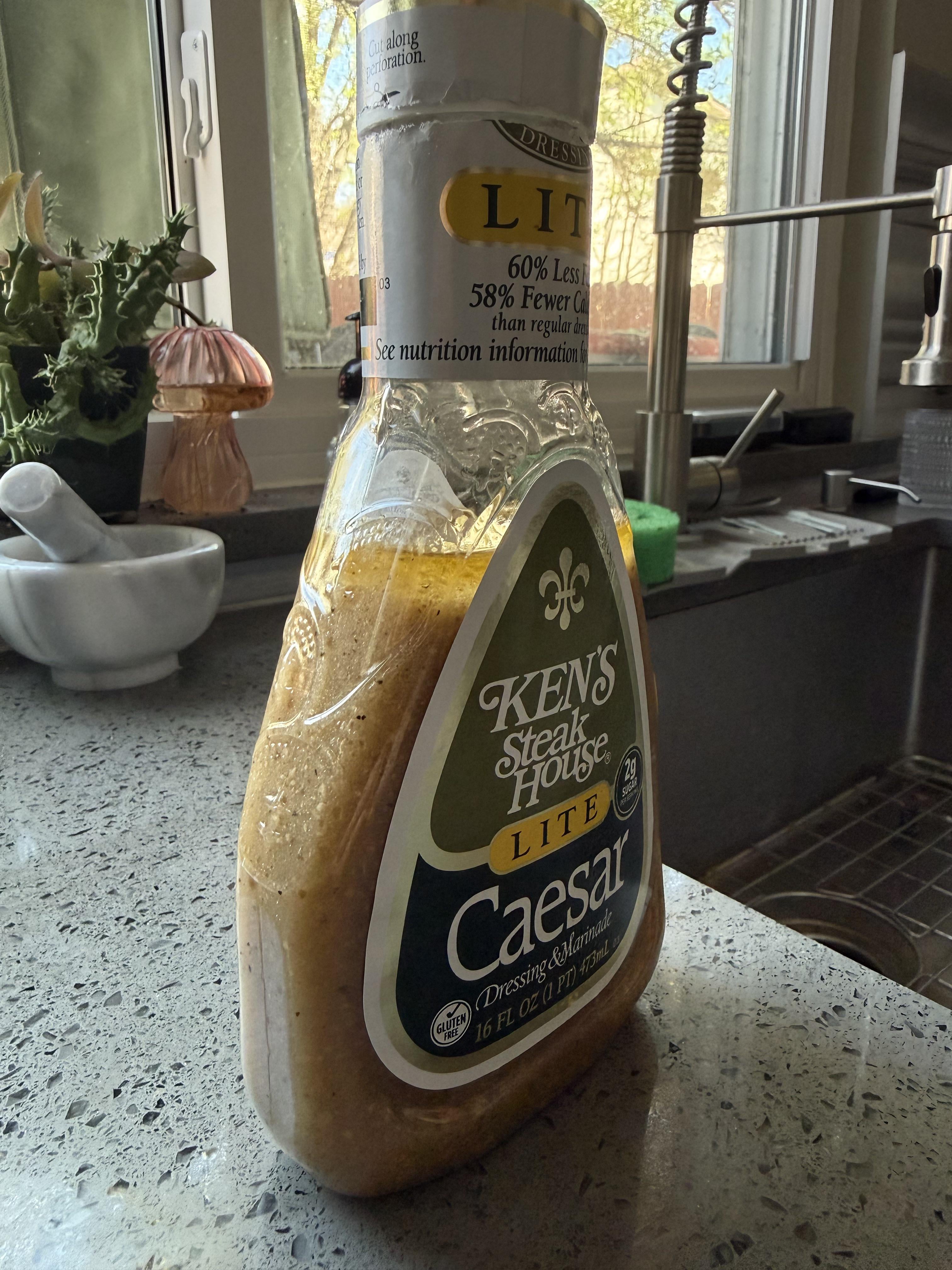 3. ken’s lite caesar is elite. i got hooked on it during a long hospital stay where i ordered the chicken caesar salad twice a day.