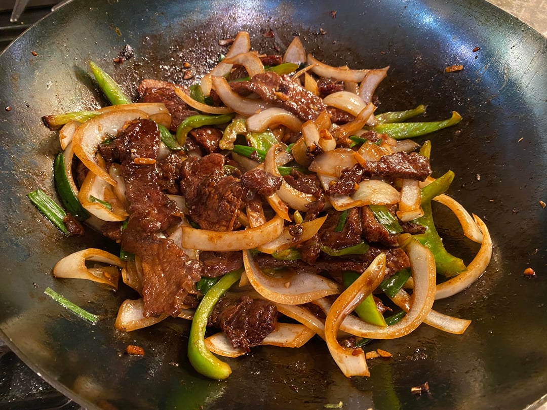 The color on that stir fry looks amazing. Those onions and peppers look cooked just right.