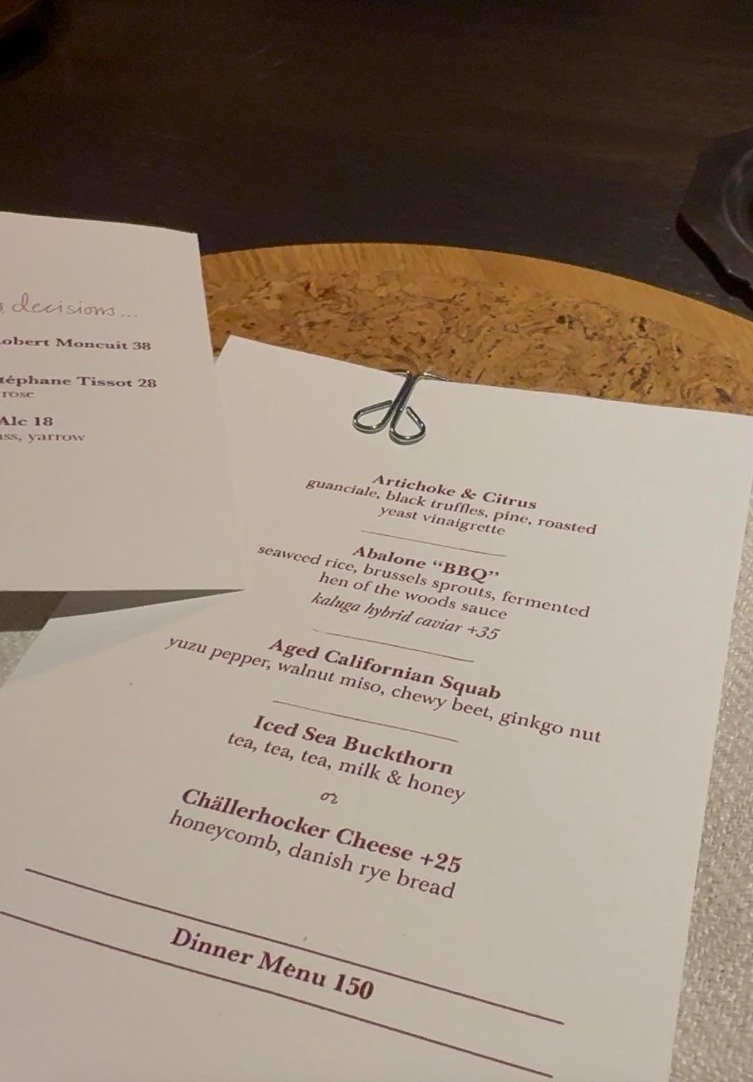 Nice experience last night at the recently opened Lielle on Pico in the old Bicyclette/Mantzke spot. From a popular Swedish chef with ties to Frantzen. $150 for four course price fix menu. Did get the supplemental pasta you see there as well for $50. Seems like a future one Michelin star spot.