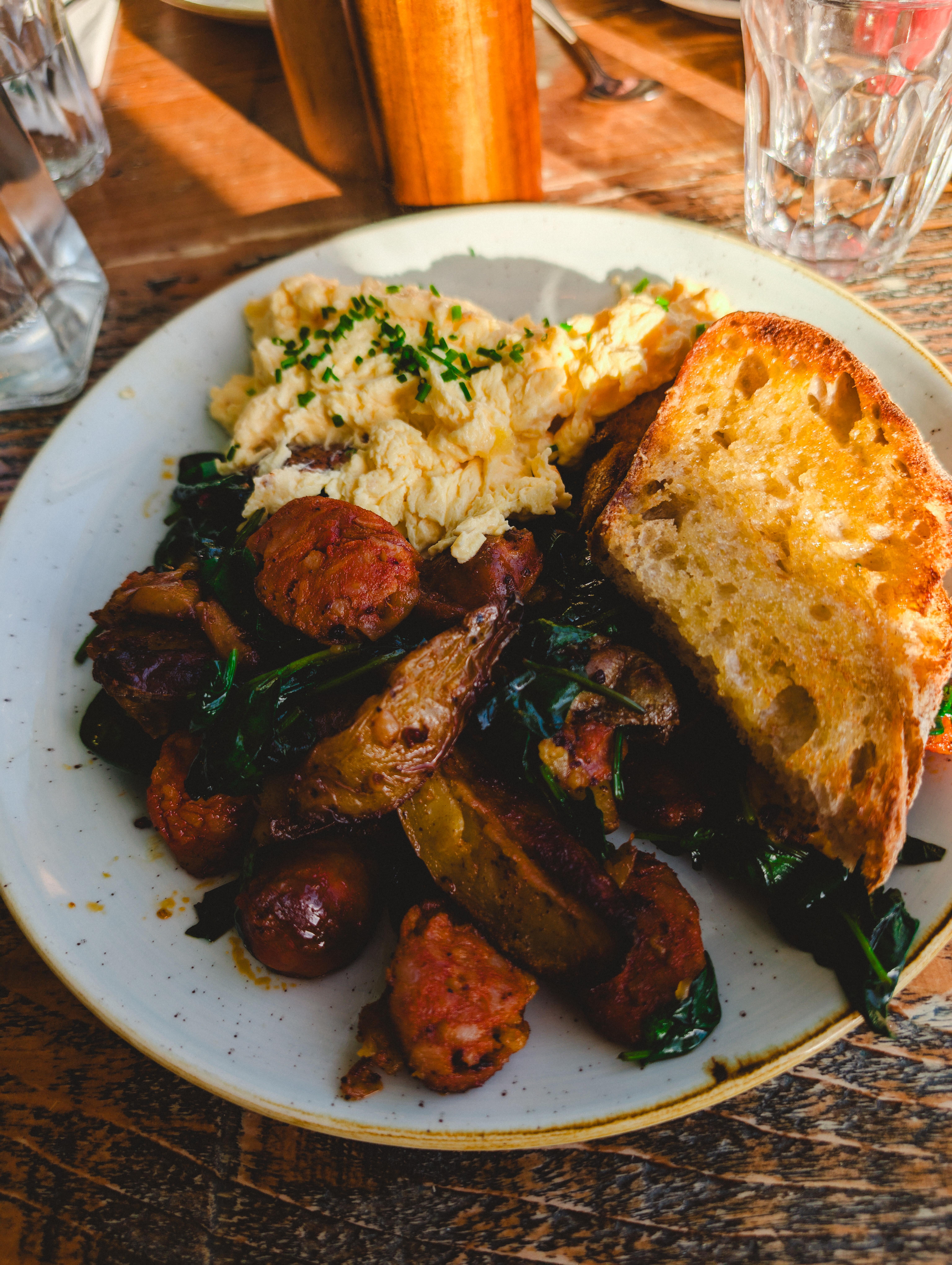 Chorizo Hash, Scrambled Eggs with Toasted Sourdough
