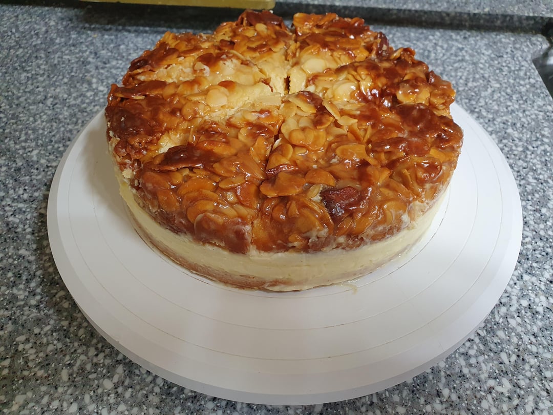 Bake: Preheat your oven to 180°C (350°F). Bake for 20-25 minutes until the almond topping is golden brown. Let it cool completely.