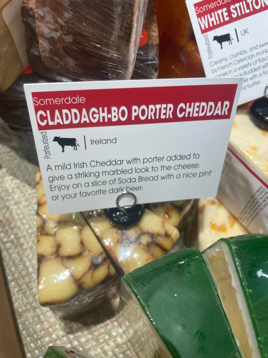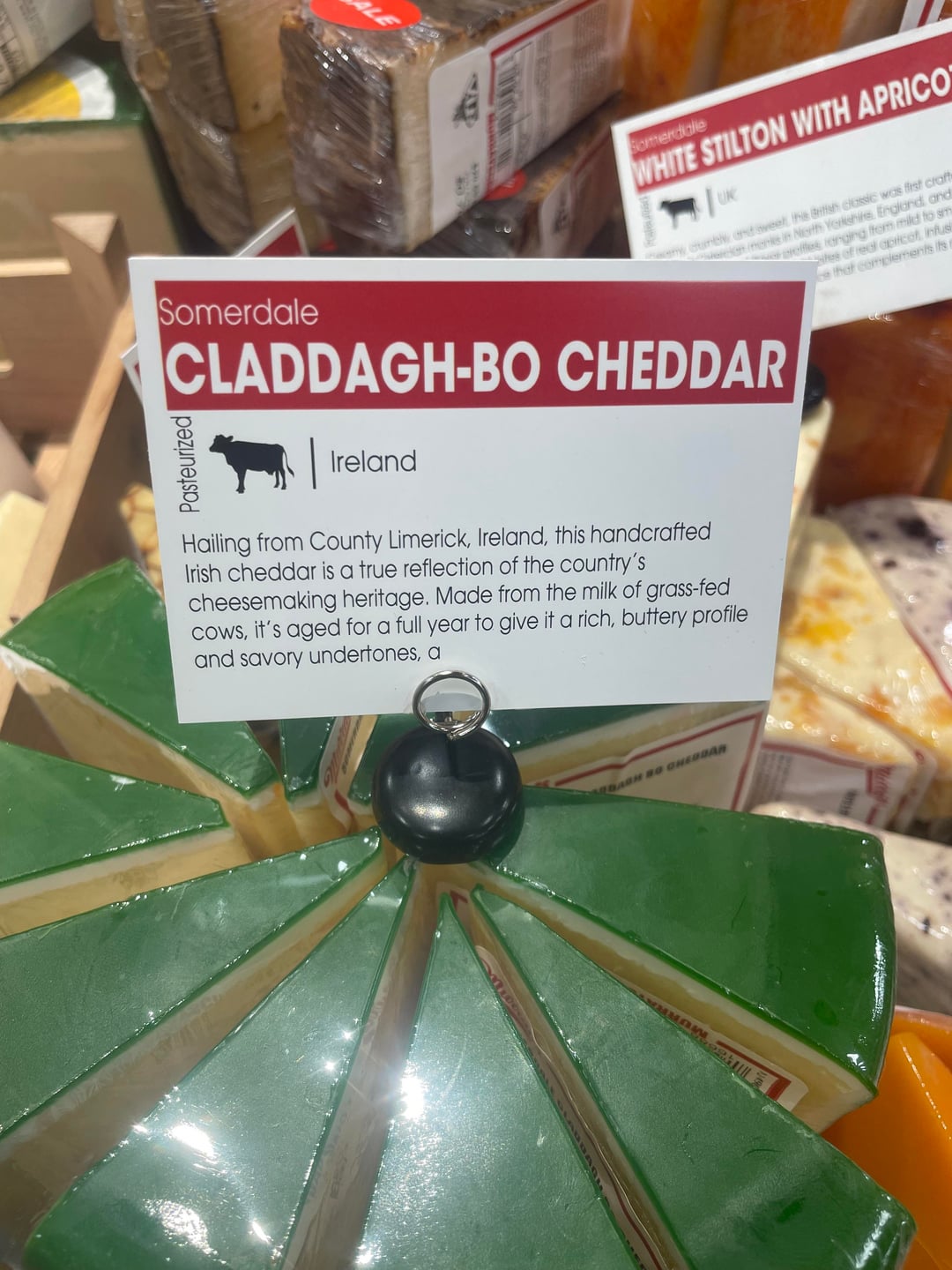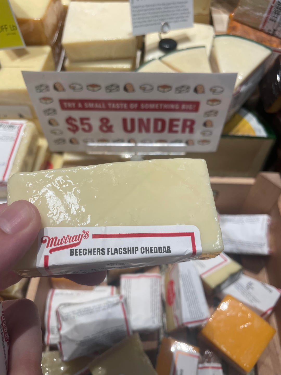 After having that underwhelming regular sharp white cheddar from Murray’s last night, I had to treat myself tonight to not one, but THREE cheeses to try and review for you all! I asked the cheese monger for any new and flavorful cheeses, and she immediately pointed me to the Claddagh-Bo cheddars. They look like very interesting, grass fed, Irish beauty’s. Then to top it off, I had to treat myself to a cheddar I’ve never tried yet, and it’s the Beechers Flagship cheddar. I’ve heard only great things from it and I can’t wait to try these when I get home!