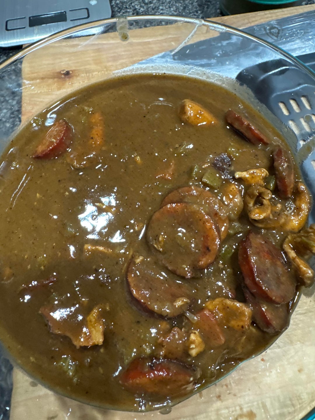Great looking roux. I make gumbo once a month and just fucking can’t use the same pan as meat. It always make think I burned it. I do add the separate meat pants dripping once the trinity goes in.