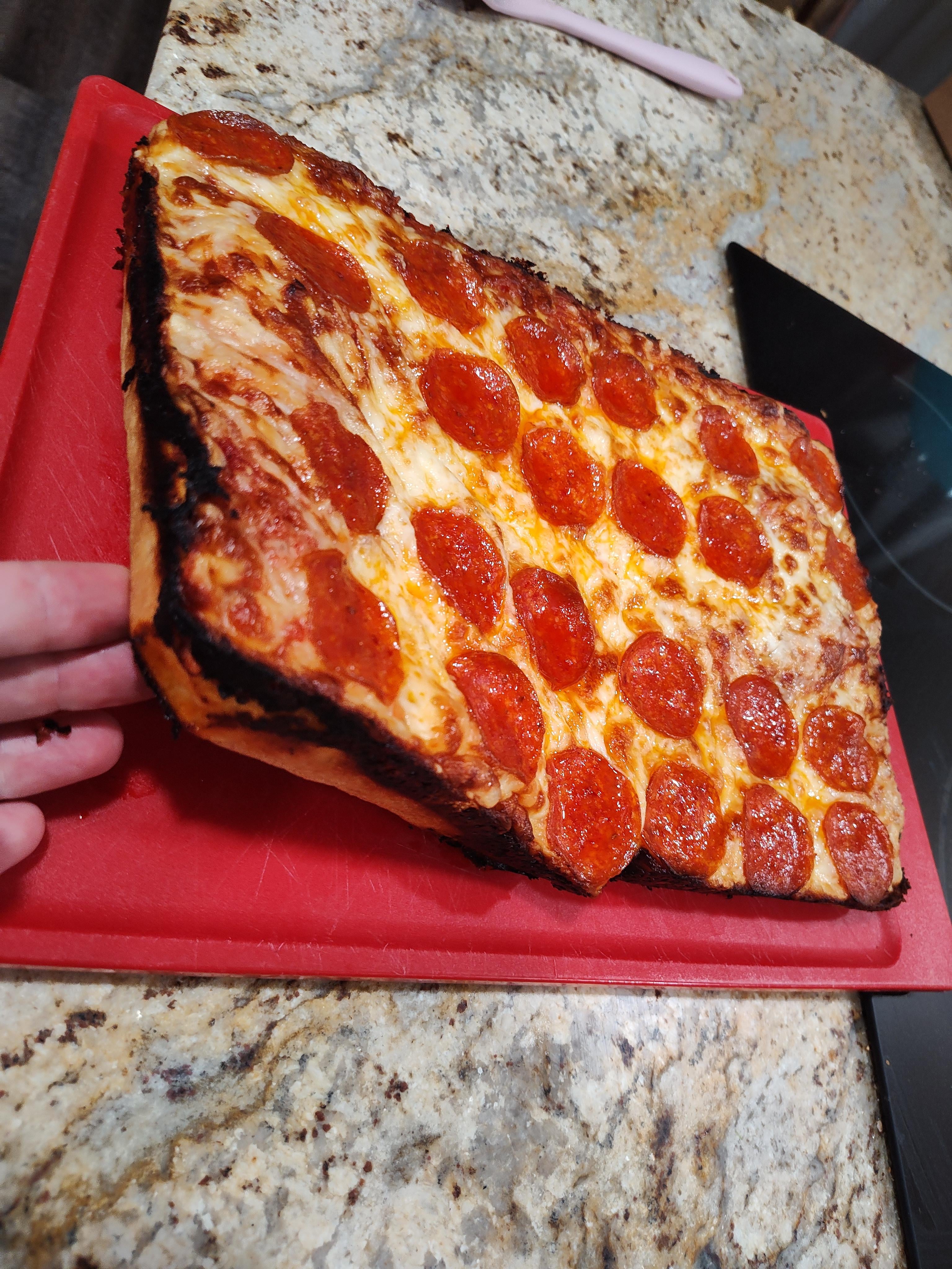 Detroit Style pepperoni pizza I made a while back [homemade]