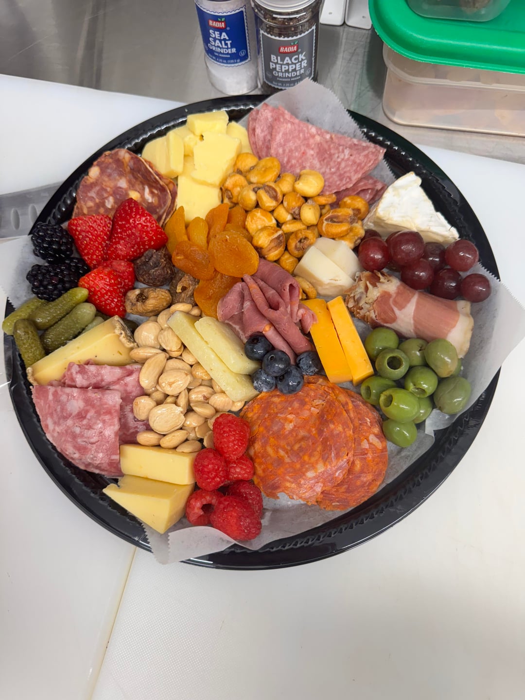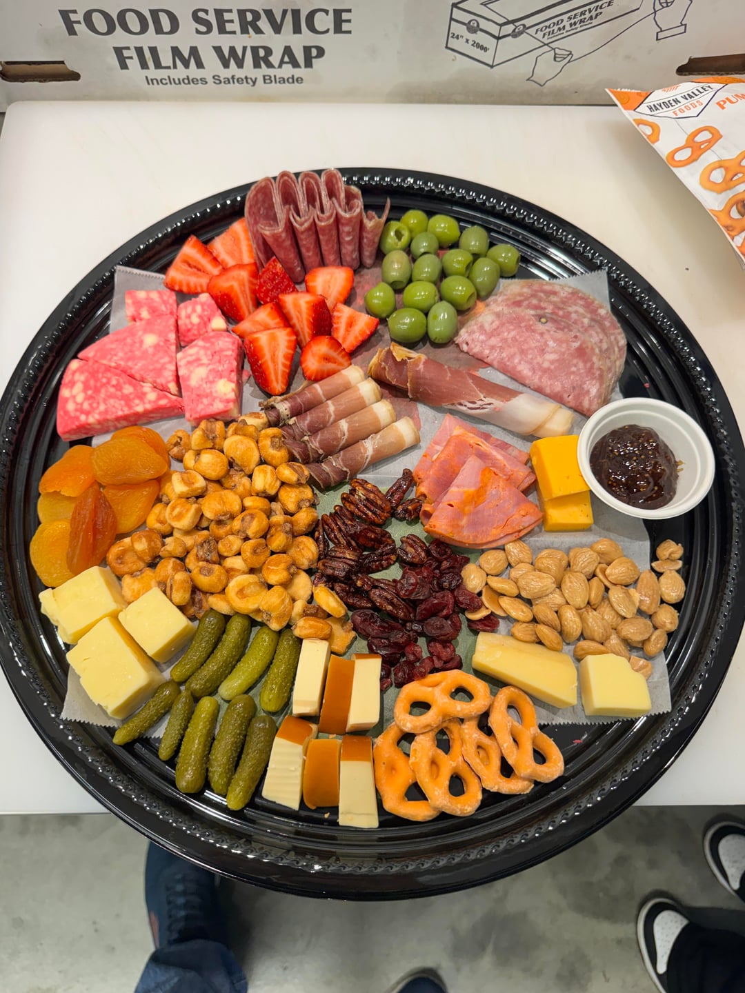 I work in a wine and charcuterie bar where we also make event trays, so I usually get pics of my better work. Pictured in order are a YOLO board with five meats and five cheeses, prepared to go; a display for marketing that was then sold to a regular customer (Pinterest helped with that one); another YOLO to go; and an 18” tray on our nicest board for a party.