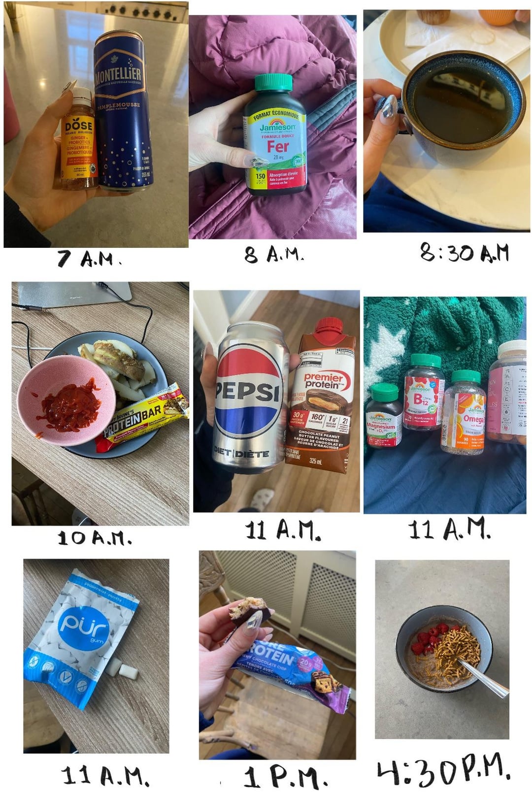 5. ⁠Diet Pepsi, and a protein shake that had some extra vitamins added to it.