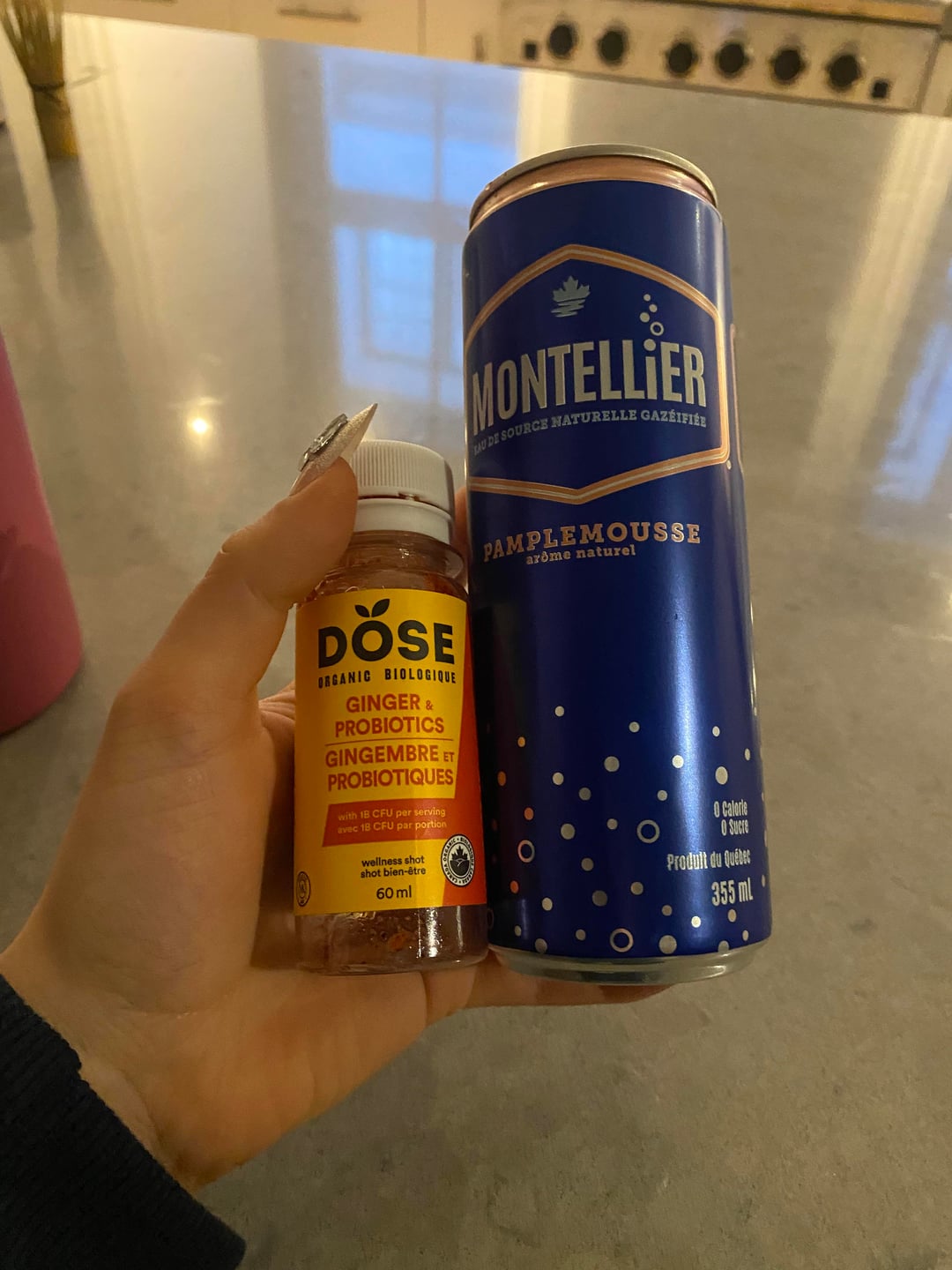 1. ⁠A ginger shot (I added some beet powder) and a sparkling water.