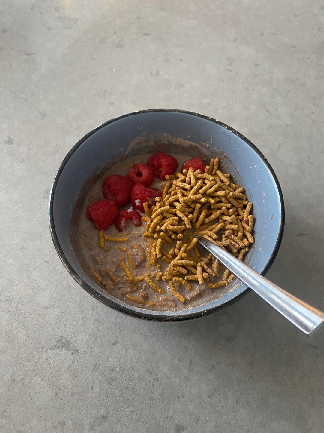 9. ⁠Fibre one cereal, raspberries, protein milk, and protein powder that had things like spinach and pomegranate in its formula.