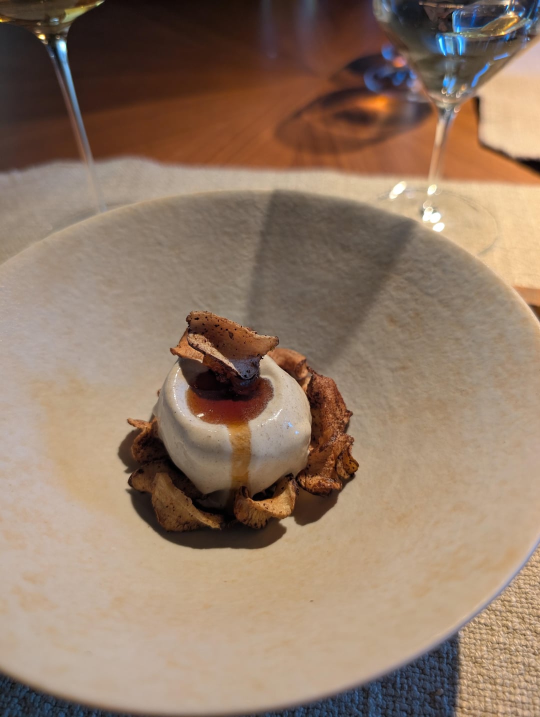 The chips dusted in kale and the light sweet potato broth were mild, pleasant, and a good palate opener.