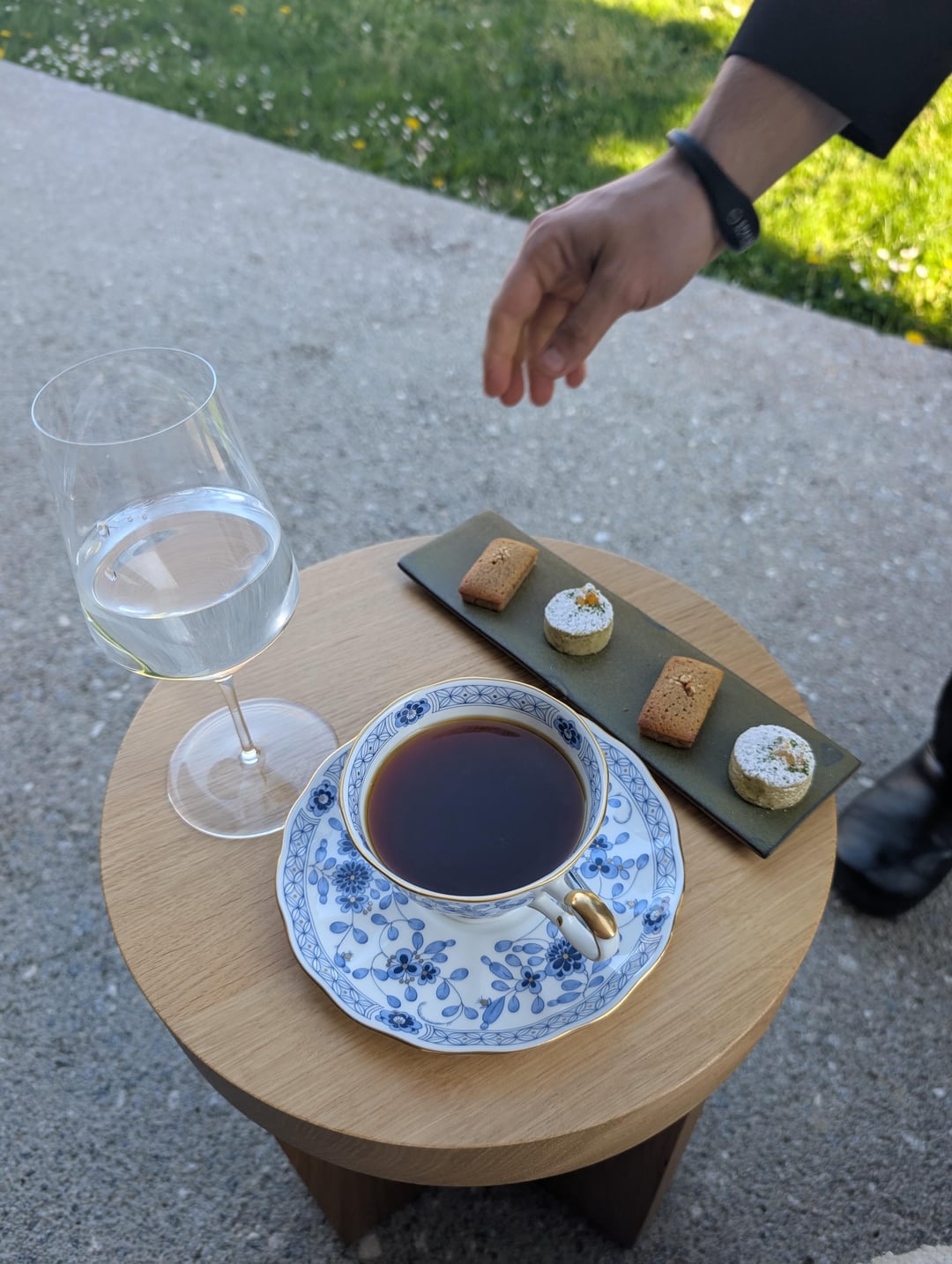 Dessert and coffee we're perfect, and we took the last coffee/dessert to the outdoors and enjoyed it while we waited for our car to return.