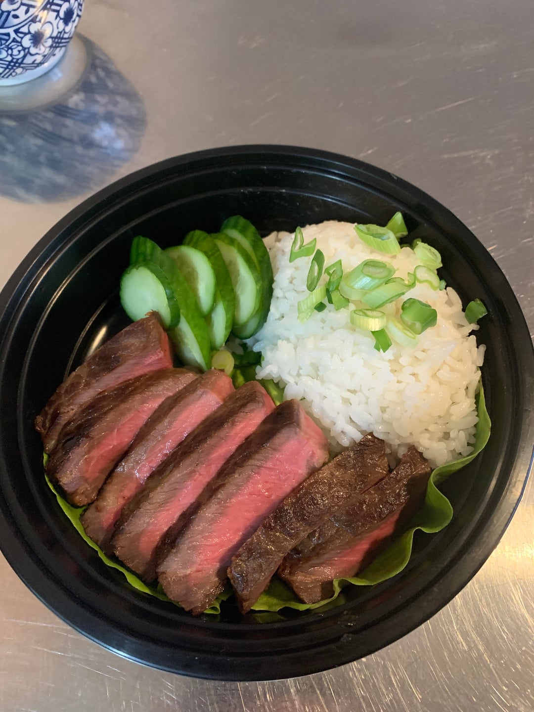 I used strip loin for the steak and also made a lunch for my girfriend since she currently works evening shifts. by Fun-Sale6786 Food