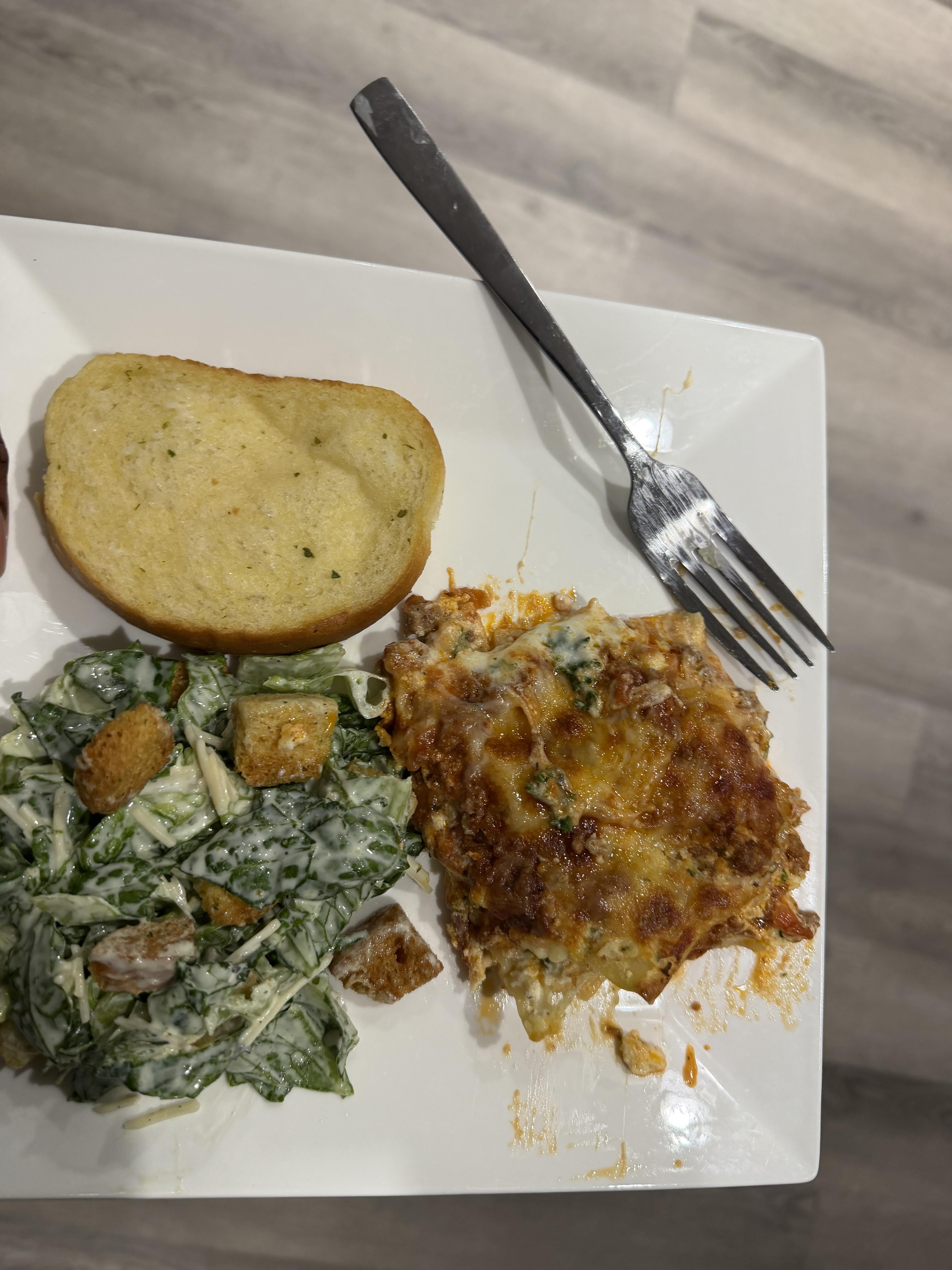 Lasagna, Ceaser salad and toast!