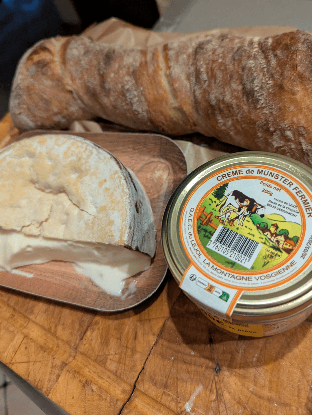 A Vacherin from the Alps, and crème de Munster, a processed cheese mainly made with Munster, like vache-qui-rit, but stronger ! Just with bread, pic-nic or cooked with potatoes like tartiflette, really versatile. by ChatGrou Cheese