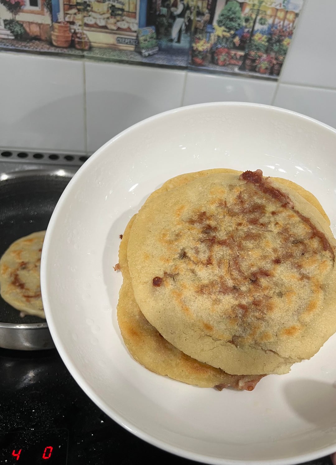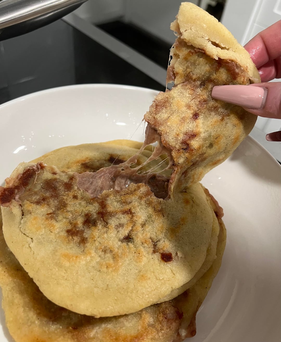 I tried pupusas for the first time a few years ago and I’ve been *obsessed* ever since. I love buying them from my local Salvadoran restaurant, but like everything else these days, they’ve gotten more expensive. But, I saw someone making them from scratch on TikTok recently and using their tips, I decided to try making them myself. I made the Salvadoran refried beans yesterday and sautéed some jalapeños before I started today (I like mine with beans, cheese and jalapeños). I only had maseca tamal, so I used a coffee grinder to make the masa finer. They were super easy to form once I got the dough right, but I had the heat too high for the first few and they got too crispy. Once I lowered the heat, they turned out perfect!