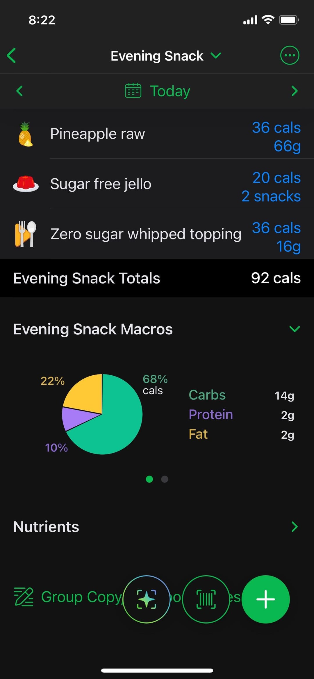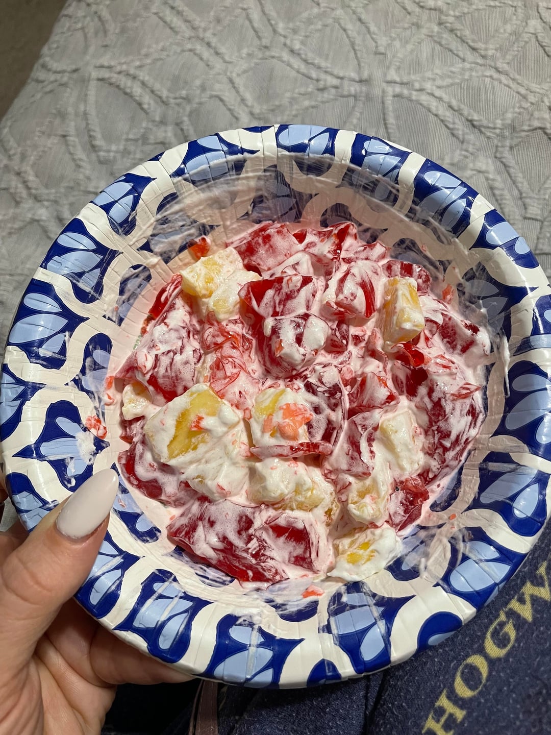 Snacks – Werther’s Sugar Free Caramels, Pineapple, Sugar Free Cool Whip, 2 Sugar Free Jello Cups