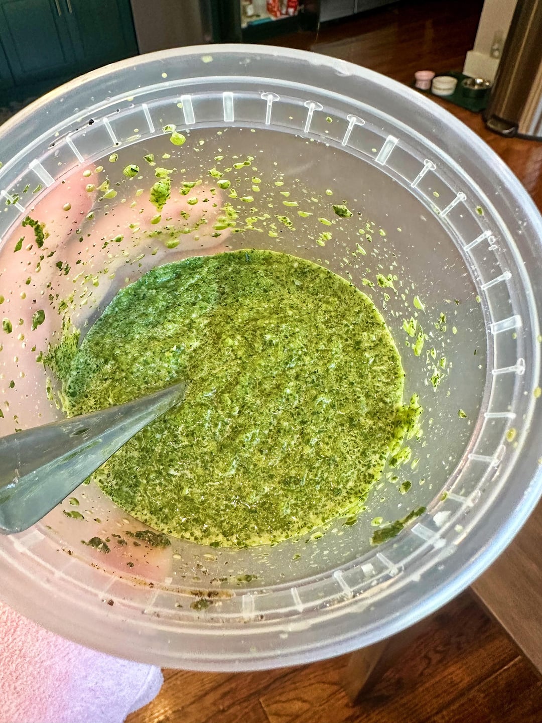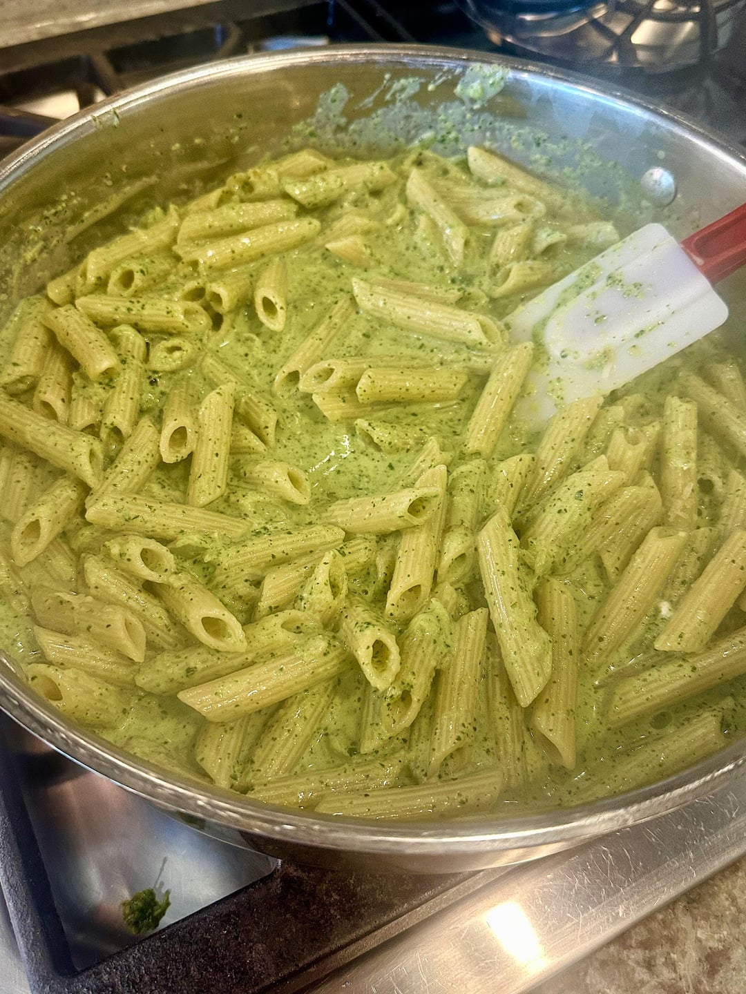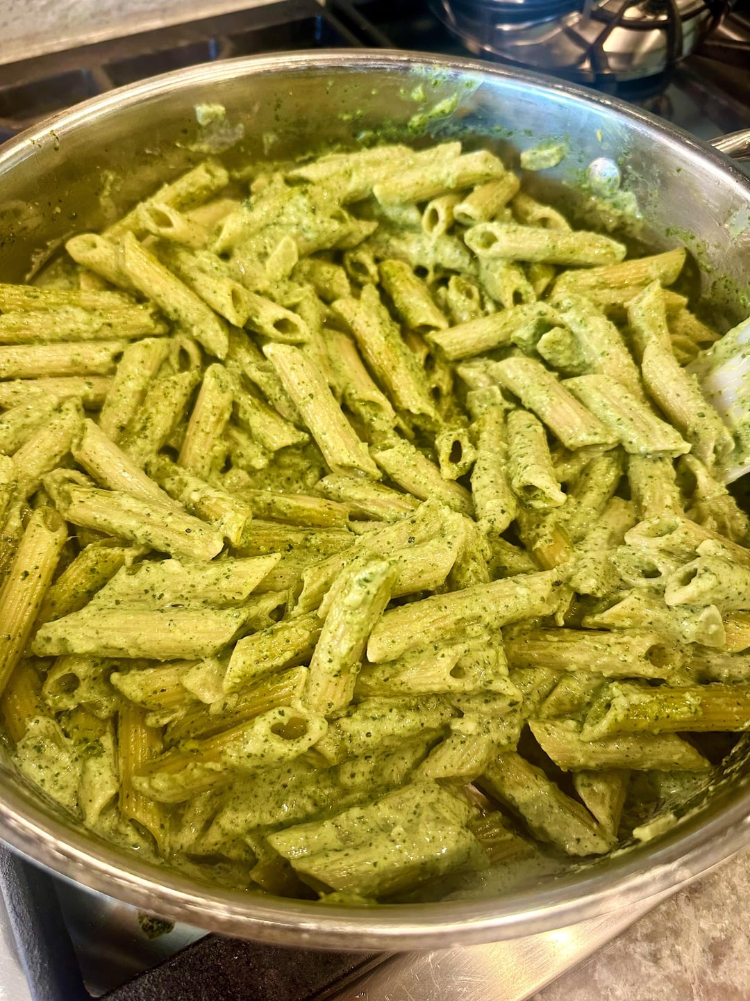 Mindy – This came out incredible! I took out what we are using for our vodka sauce chicken cutlet sandwiches tomorrow, and I made a pesto cream pasta for my husband. Photos are before he chopped and added a whole rotisserie chicken.