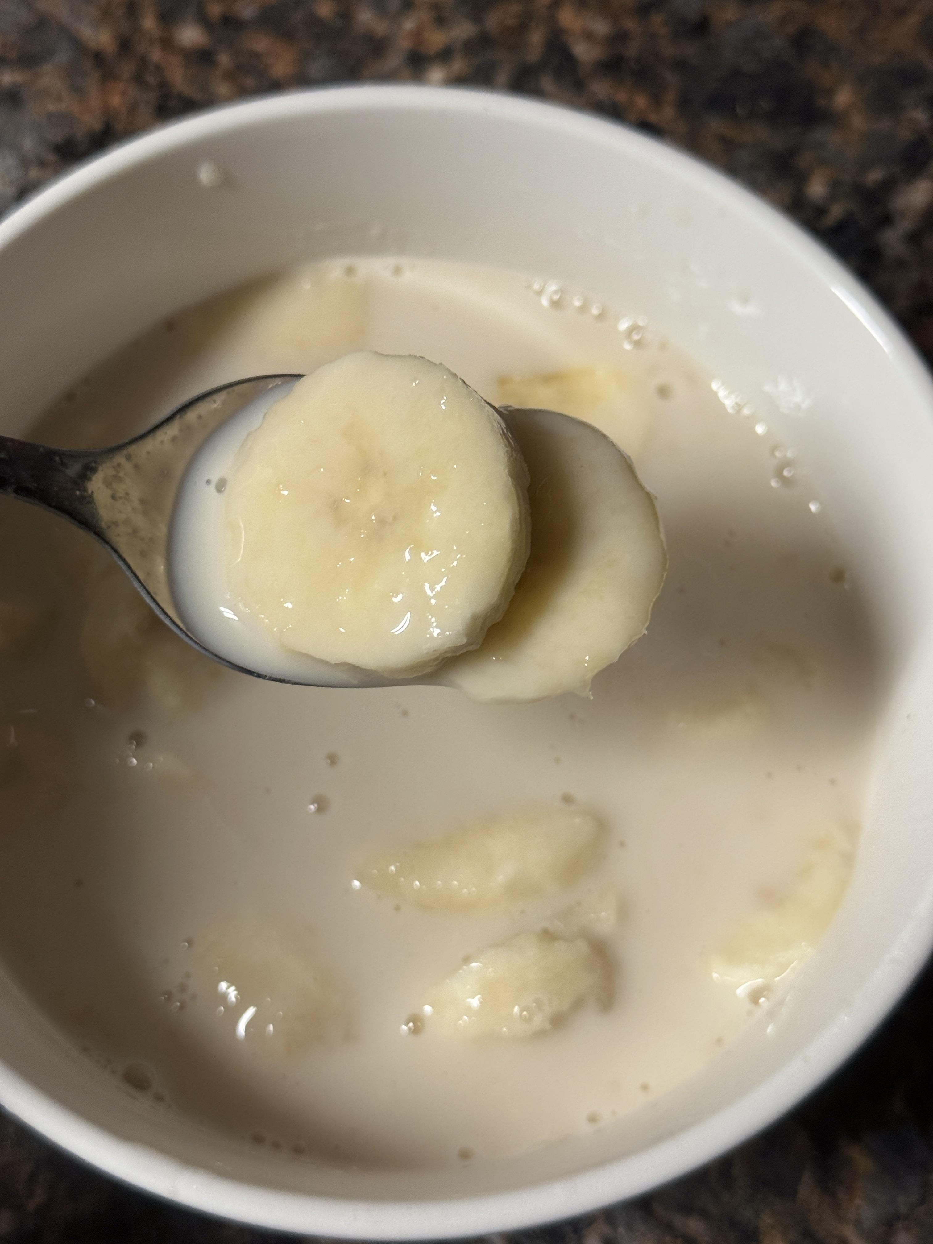 I don’t know if I just invented something, but I totally blew my own mind. I steep milk with a bag of Earl Earl Grey tea overnight, I added Splenda and had the odd thought of putting it in a bowl and added bananas. Since Earl Grey tea taste like fruit loops I feel like I’m eating cereal.
