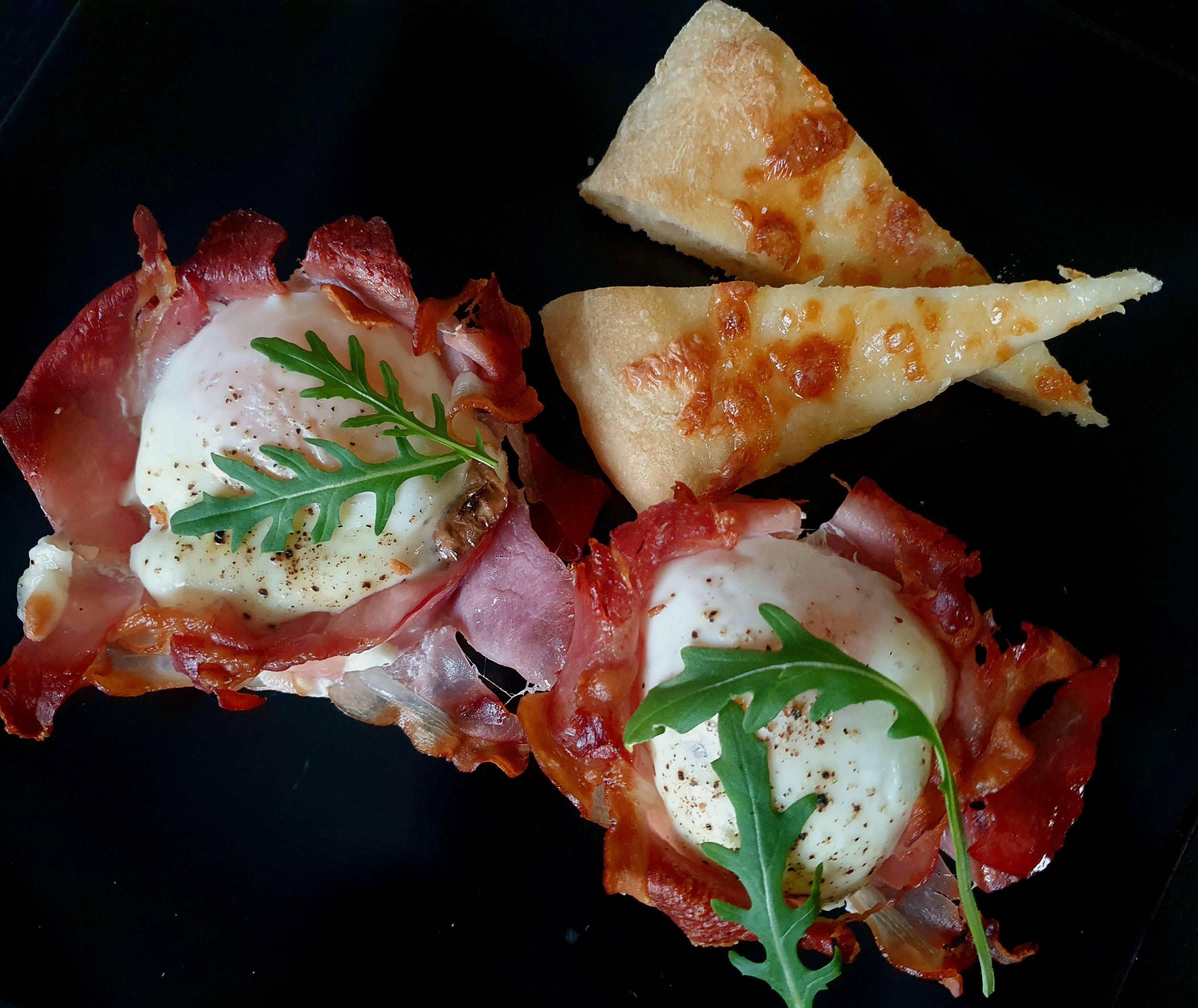 Eggs in ham & cheese foccacia [OC]