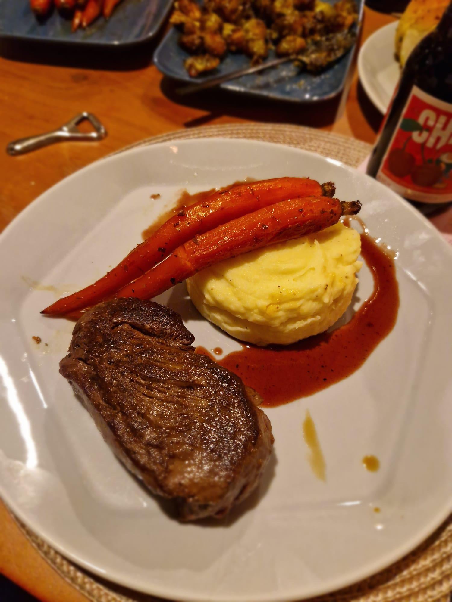 Yesterday Was My Birthday…. so Steak 💁🏼♀️ Wagyu Steak (Cheers Aldi), Potato Salad with Peas and Loadsa Herbs and Chimi Sauce.