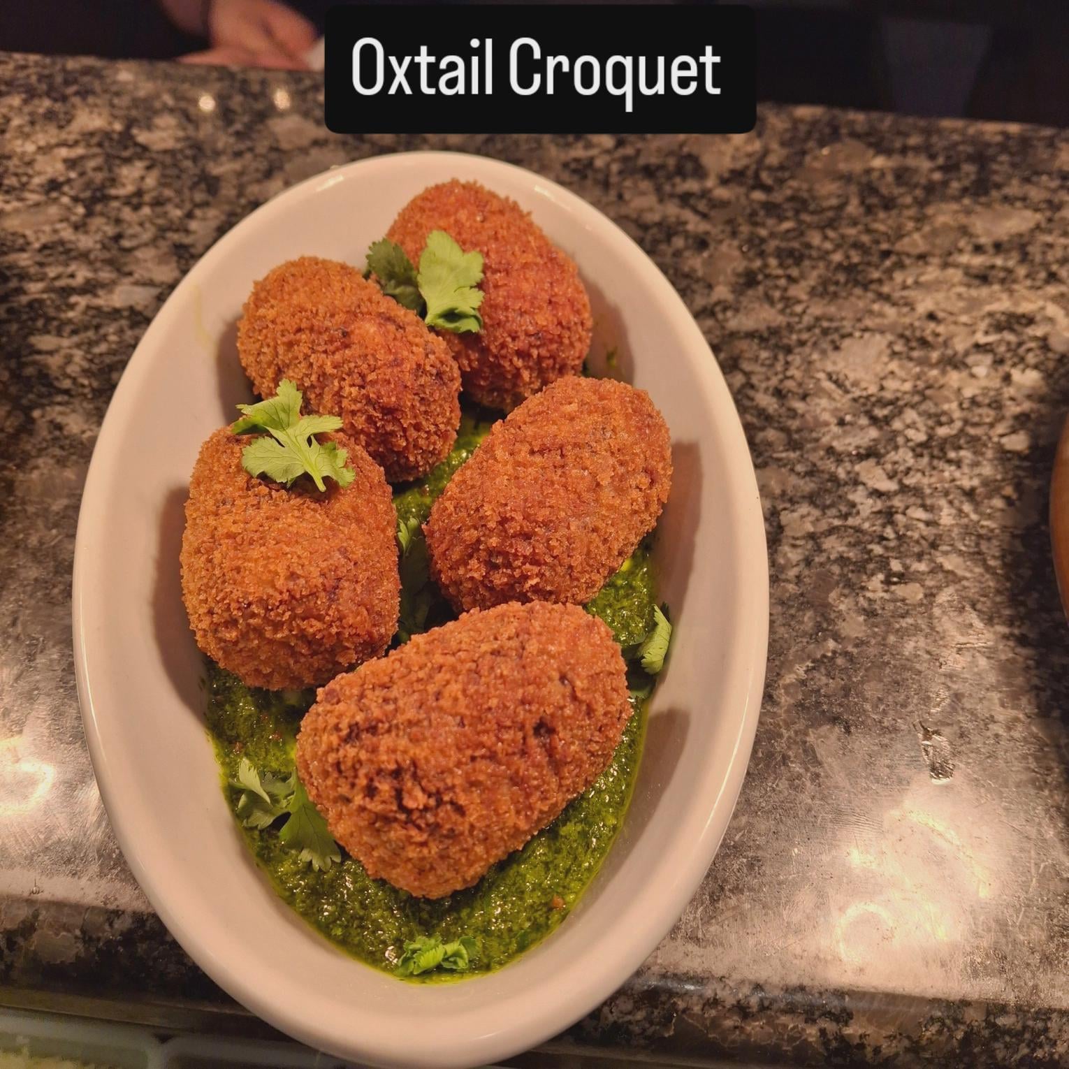 These are Oxtail Croquets with Cilantro pesto.