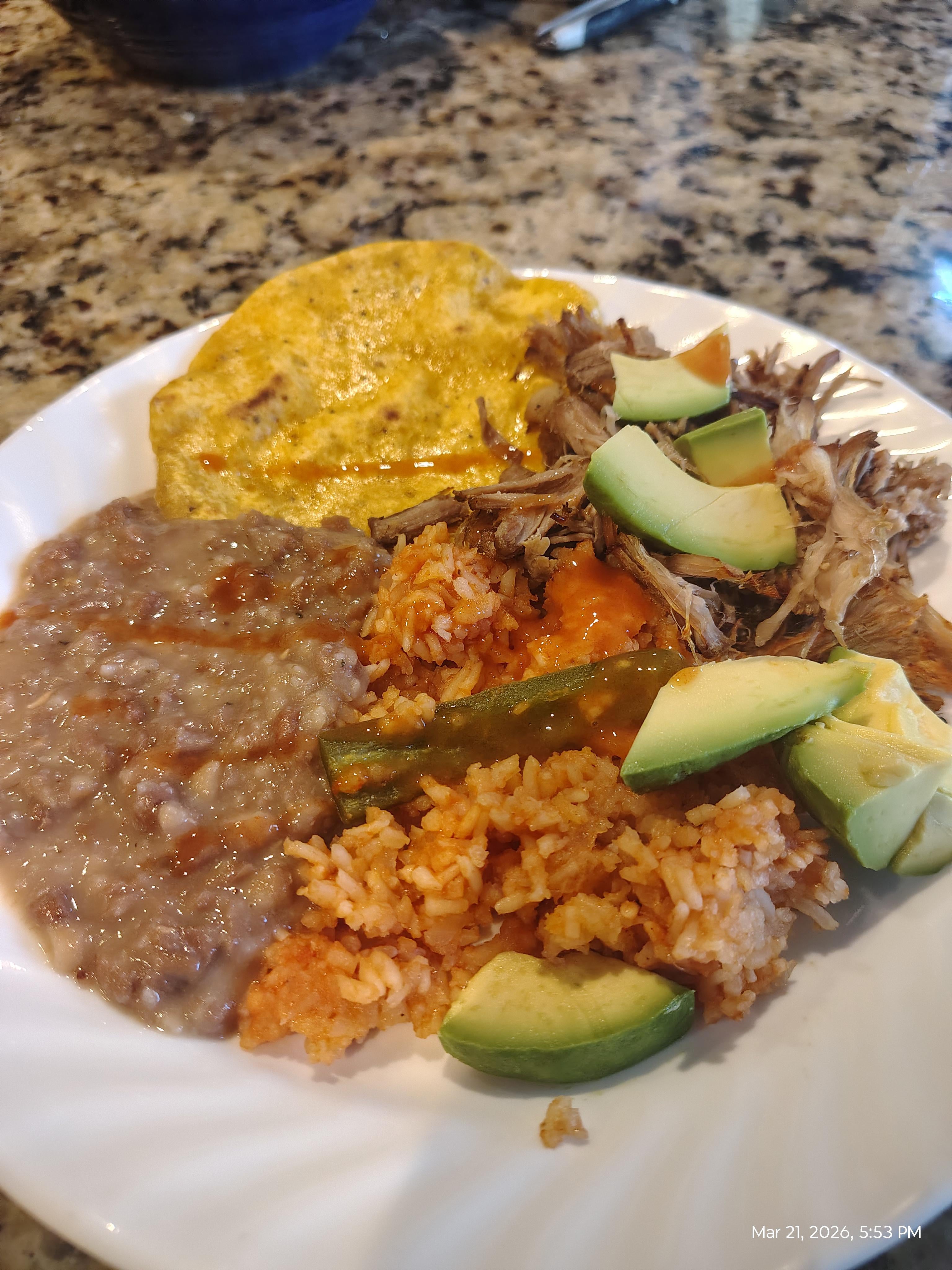 Pork carnitas, refried beans, Mexican rice. Wife’s birthday dinner by Most_Talk_2067 Dinner Tonight Tonight's Dinner