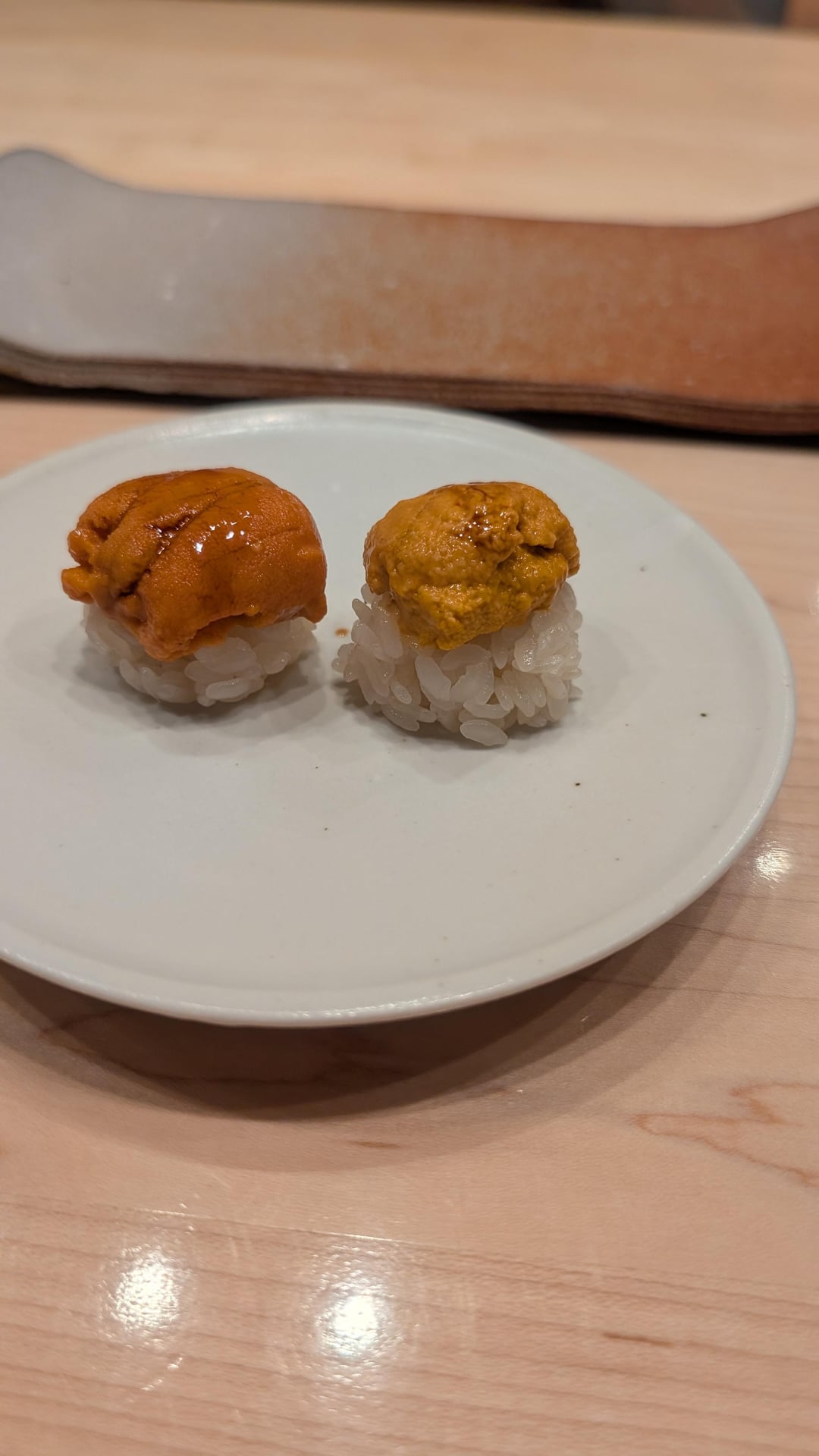 The dueling uni courses were fascinating, the SB uni being a bit brinier and having a much fuller flavor and the hokkaido uni being incredibly light and delicate.