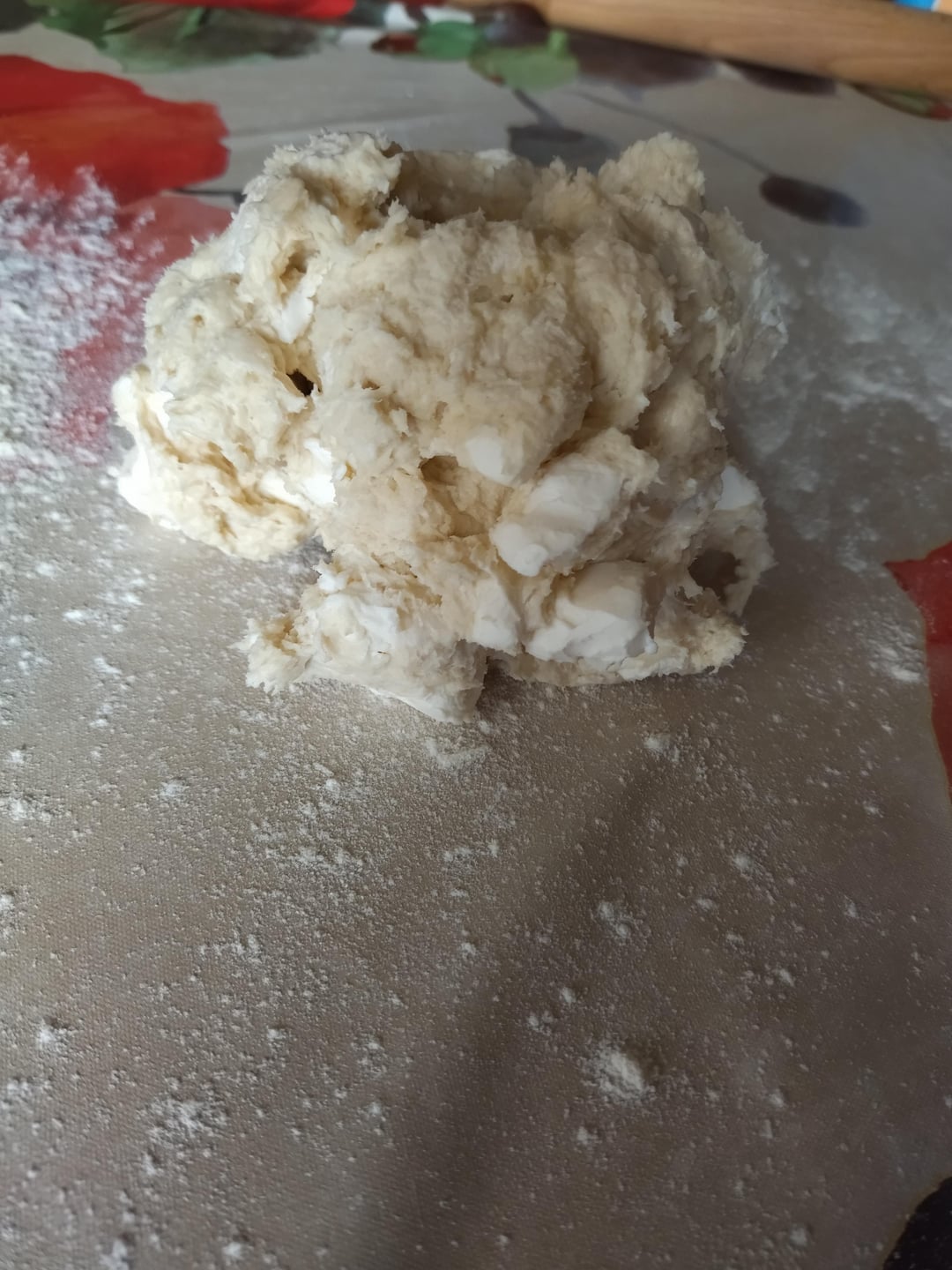 Preparing the puff pastry -> Place the water, flour, salt, and soft butter in a stand mixer and mix for 1.5 minutes. Then add the cubed cold butter and mix for 1 minute. The dough won’t be smooth; the cold butter should remain in visible pieces, not melted. Roll out the dough on a floured surface and use a rolling pin to shape it into a rectangle, adding flour if necessary. Make the first fold in 3 (like a wallet), with the opening of the folds always facing right. Using a rolling pin, roll out the dough into a rectangle again and make the second fold in 4 (like a book). Cover the dough with plastic wrap and refrigerate for an hour. After an hour, take the dough, shape it into a rectangle with the rolling pin and make the third fold in 4, then roll it out again into a rectangle and make the final fold in 4. Now refrigerate the dough for at least 2 hours. The best way to do this is to leave it overnight and then make the palmiers shapes in the morning (like I did).