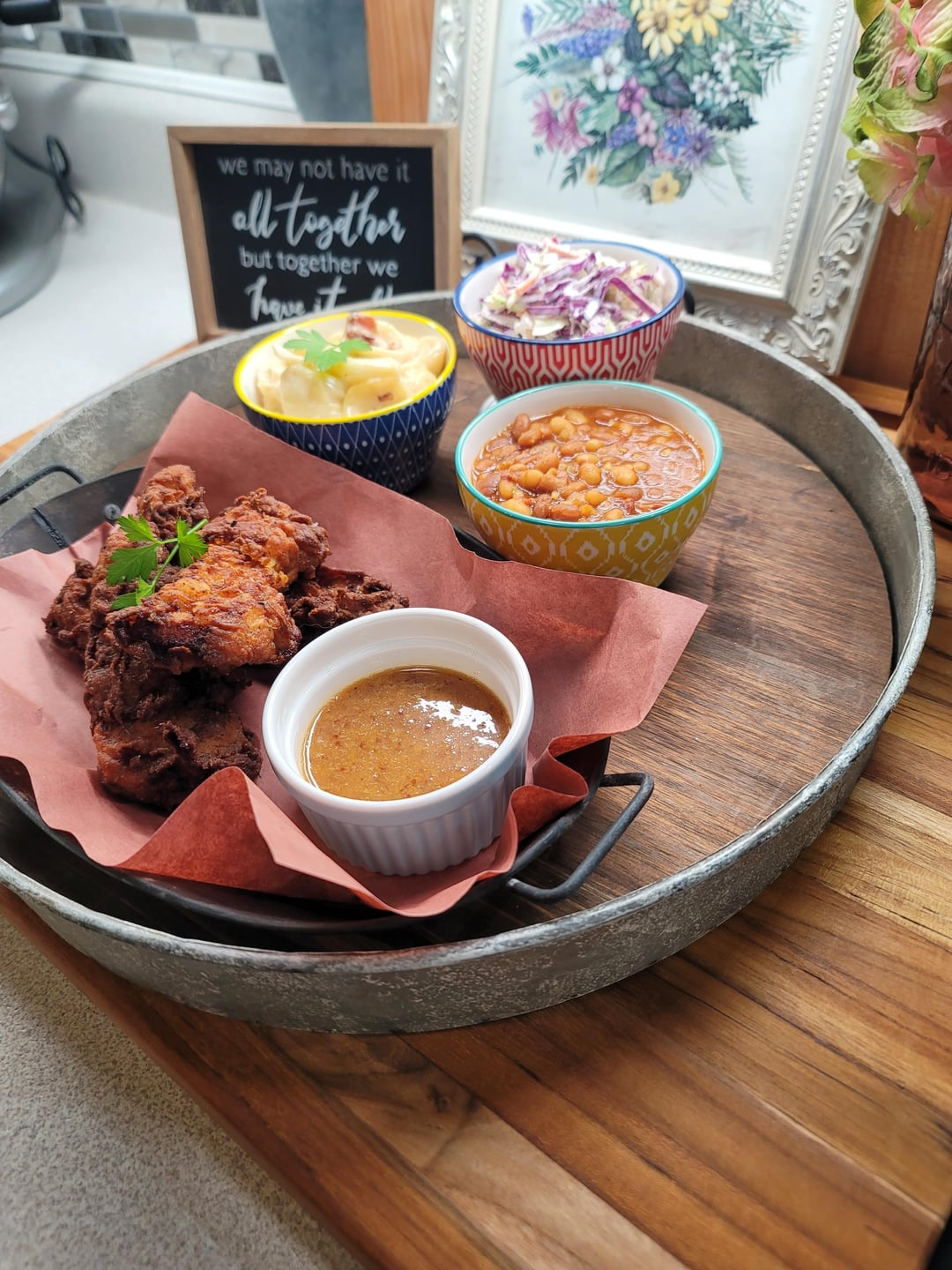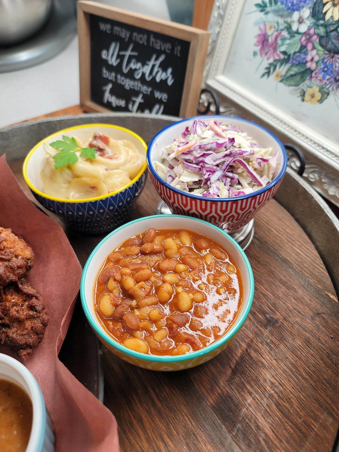 [Homemade]Fried Chicken Strips w/ Bacon Mac-n-Cheese, Baked Beans, Cole Slaw, & Honey Mustard Dipping Sauce!!! by Inner-Sir-1214 Dinner Tonight Tonight's Dinner
