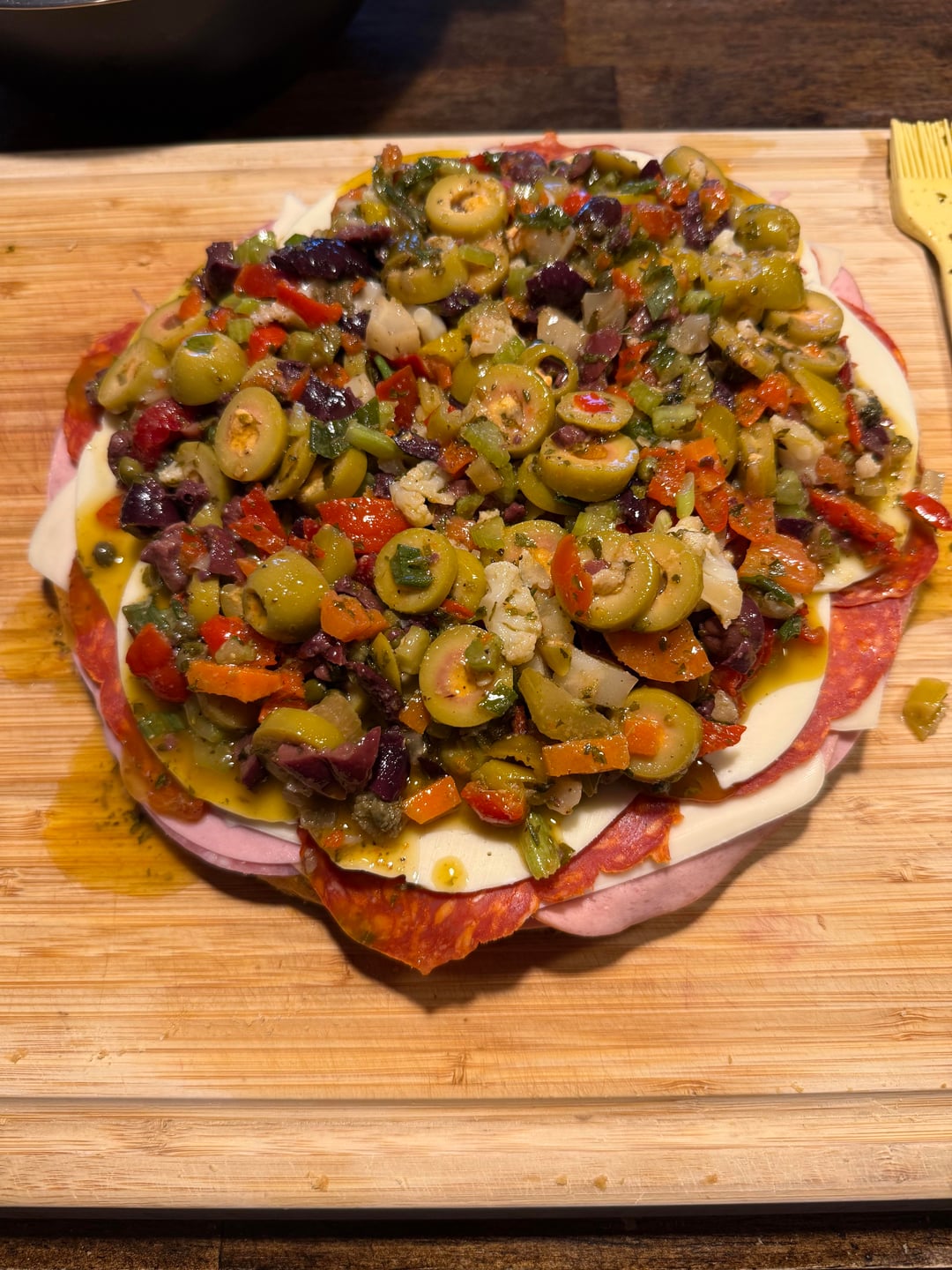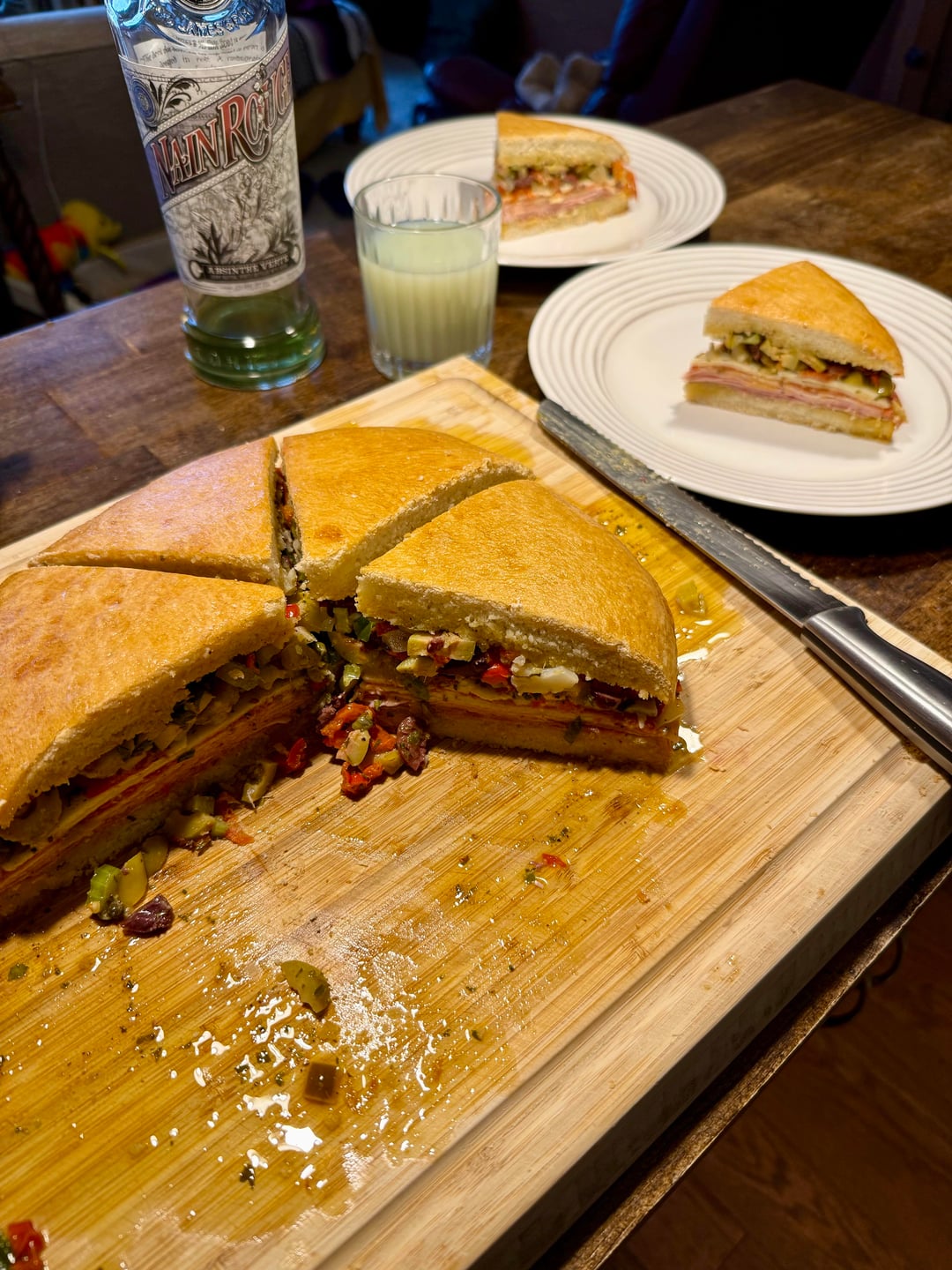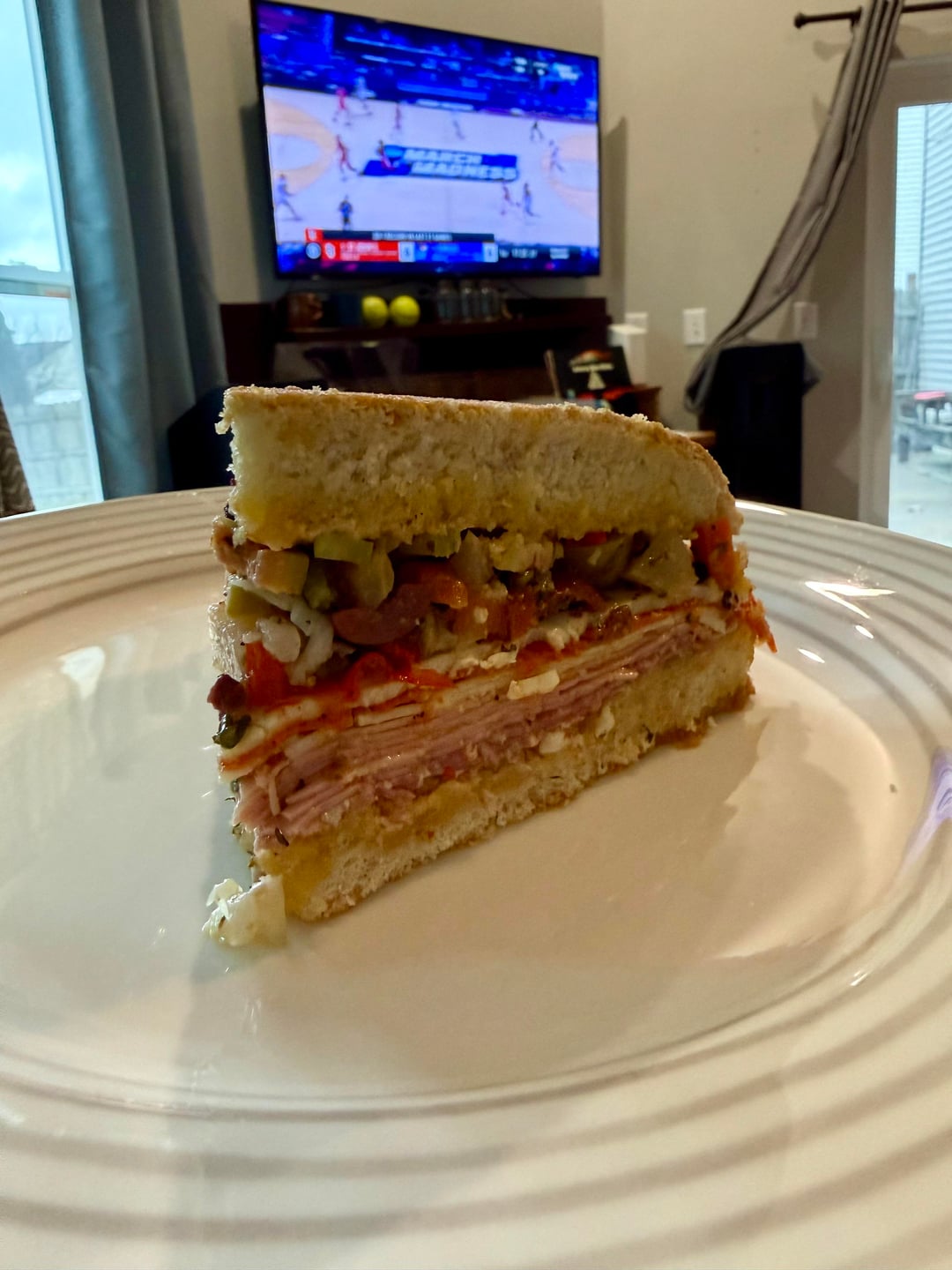 For the last 15 years i’ve been making muffulettas for the opening round of march madness as a fun personal tradition. It’s easily my favorite sandwich of all time. The recipe started off as a replica of central groceries but i’ve tweaked it over the years with the olive salad or bread, more recently making a spicy one like I had once at Verti Marte – the dude said just add a bunch of cayenne to the olive salad.