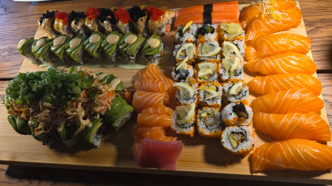 Brave to put oil based sauces on the wooden board. Sushi looks fire. Wanna be friends?