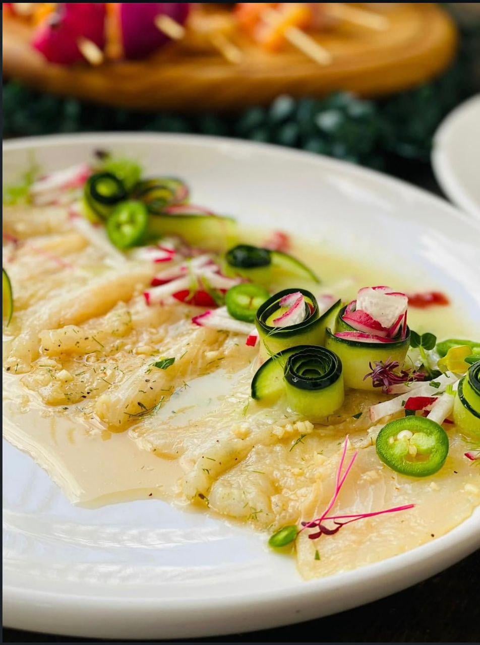 White Fish Tiradito with Lime Citrus Dressing, Cucumber Ribbons, Radish, and Fresh Jalapeño [OC] by blitzcartier Food Porn