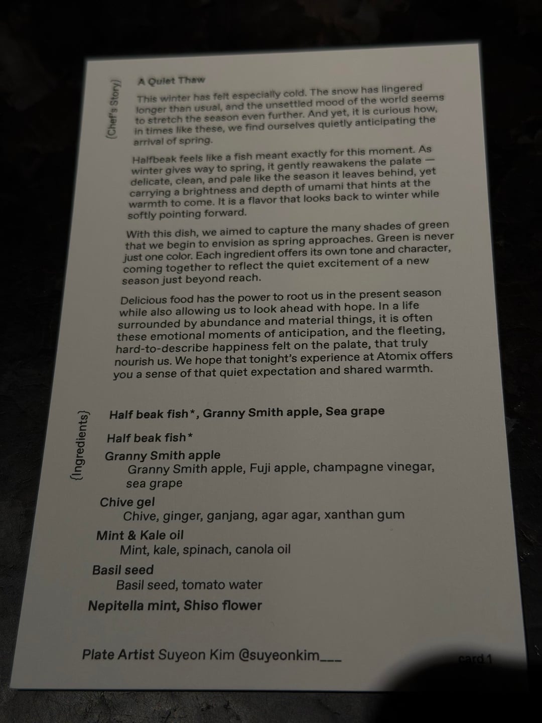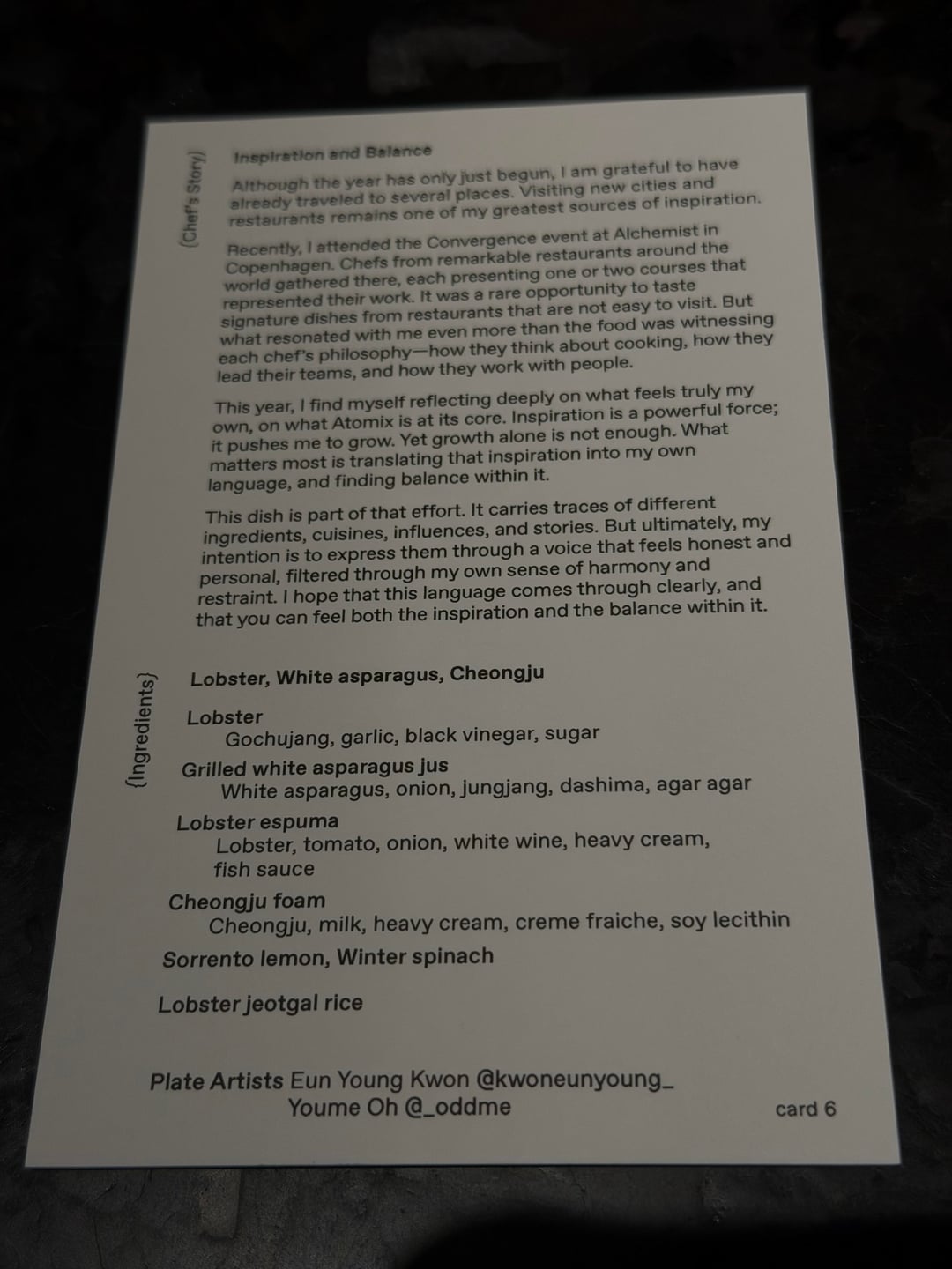 I tried to include as many course cards as I could, but hit the image limit. Definitely a worthwhile dining experience.