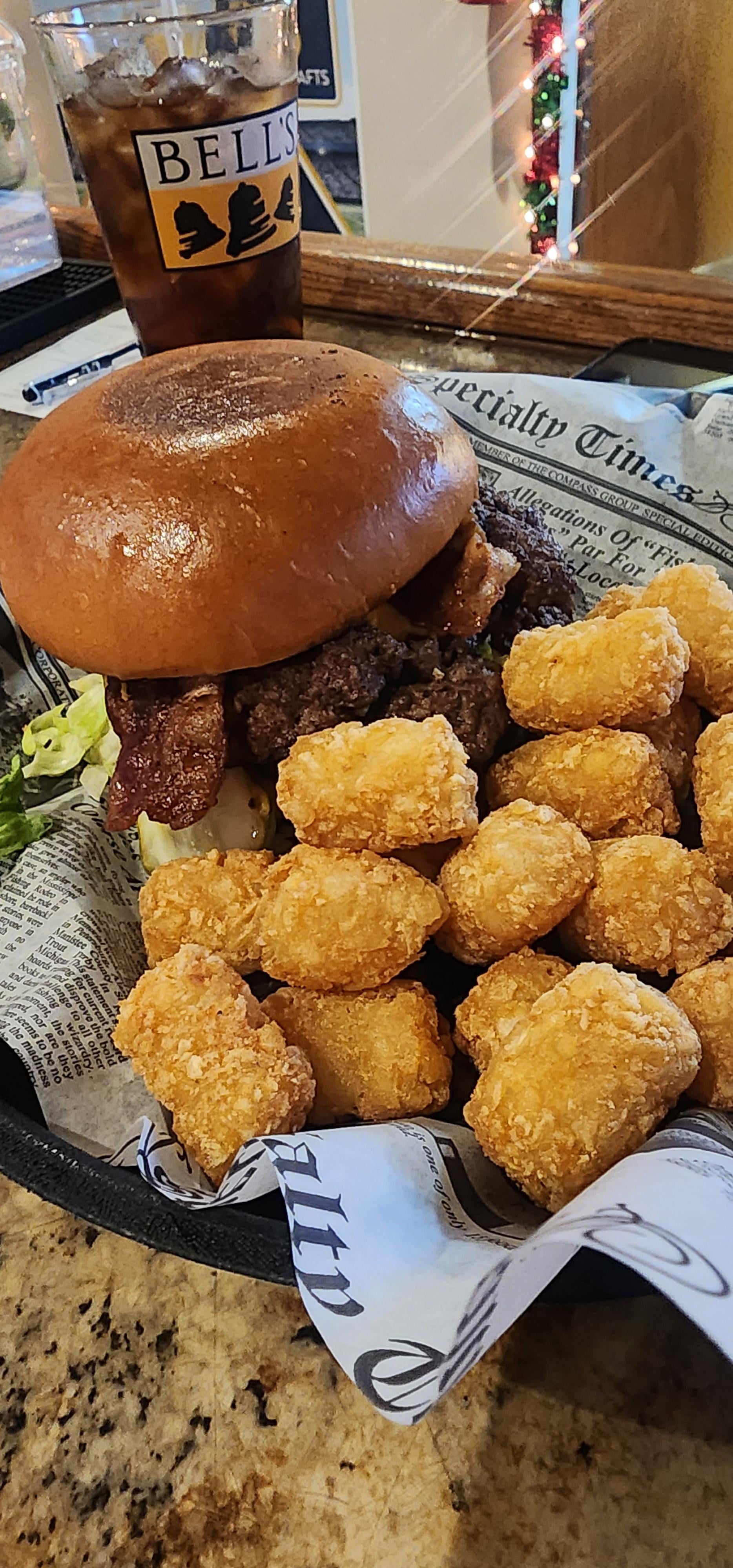 Delicious Smash Bacon Cheeseburger with tots