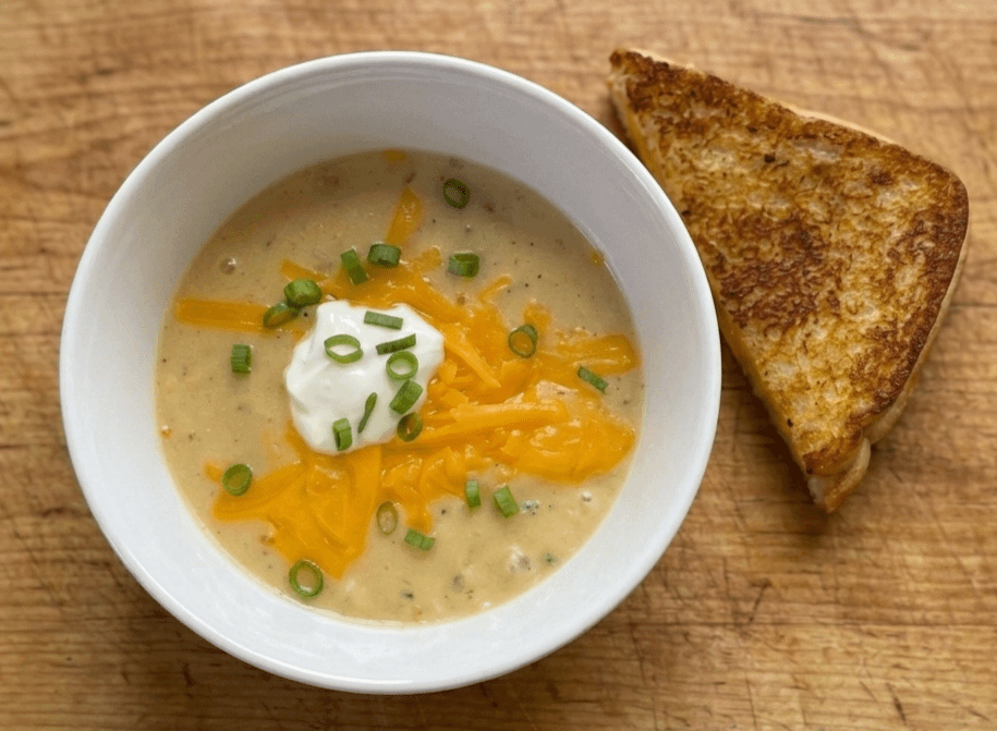 [HOMEMADE] Loaded Potato Soup and Grilled Cheese