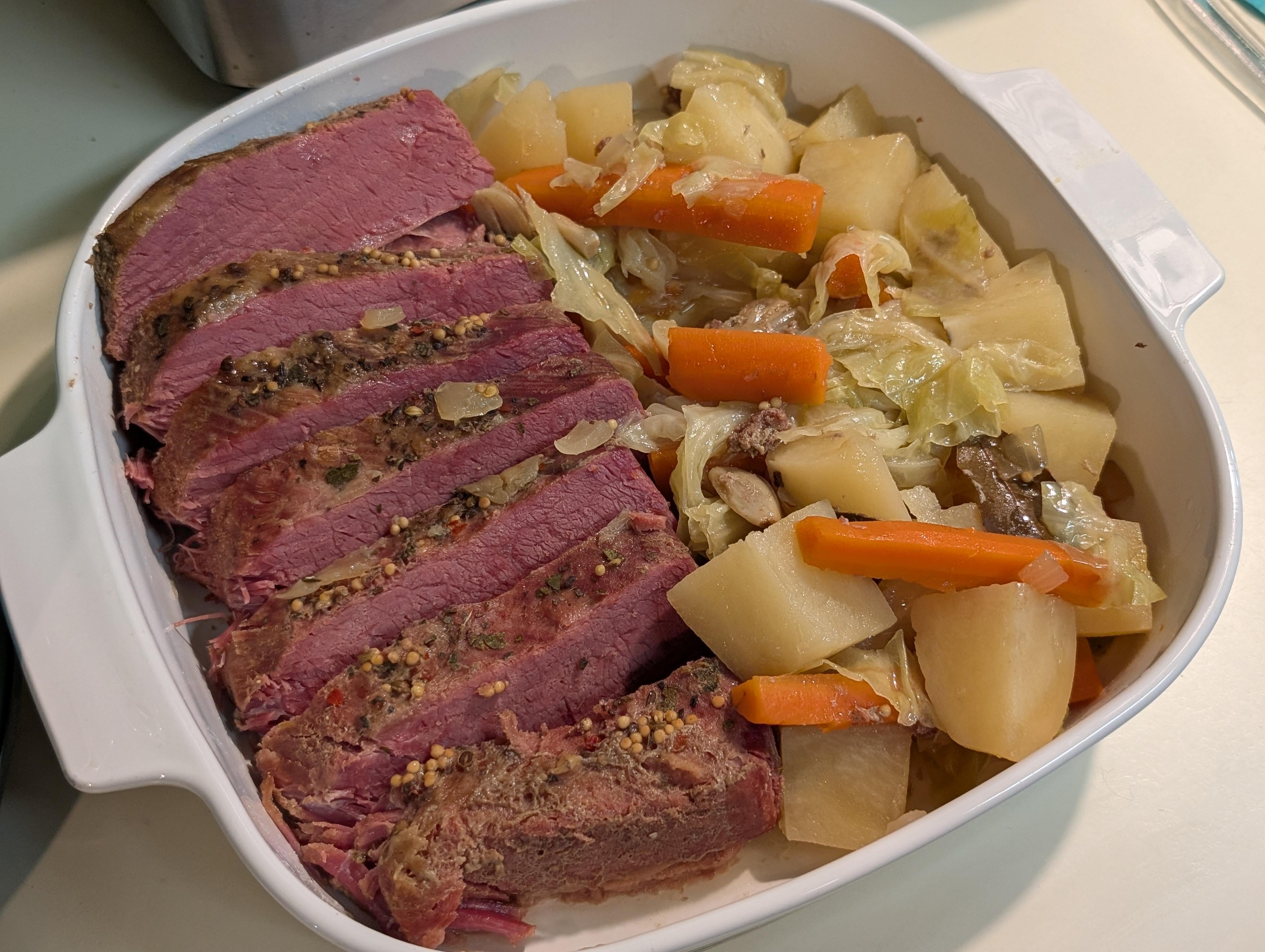 Low and slow, crockpot made corned beef and cabbage from St. Patty's Day 🤤💚