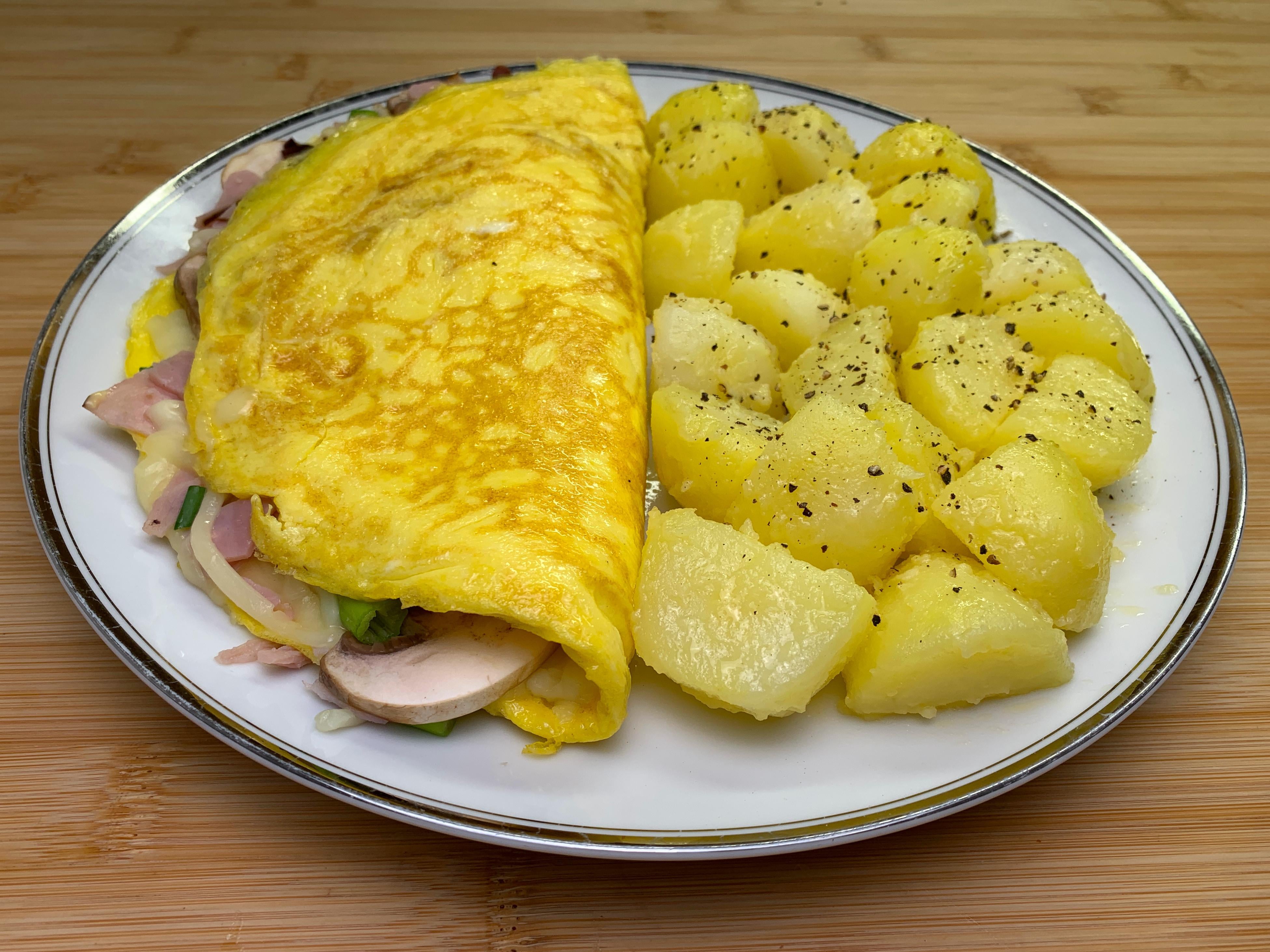 Nice. You managed to fold raw ingredients into an overdone omelet. Those potatoes look like they need salt. Why is this a “western omelette?” Because it’s west of being any good?
