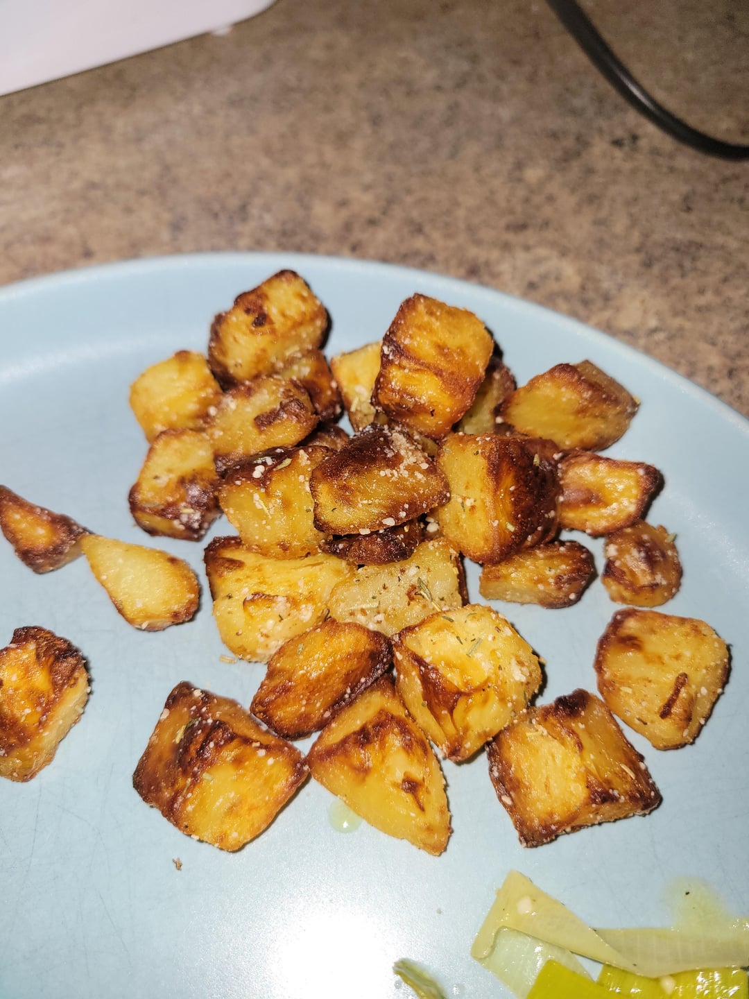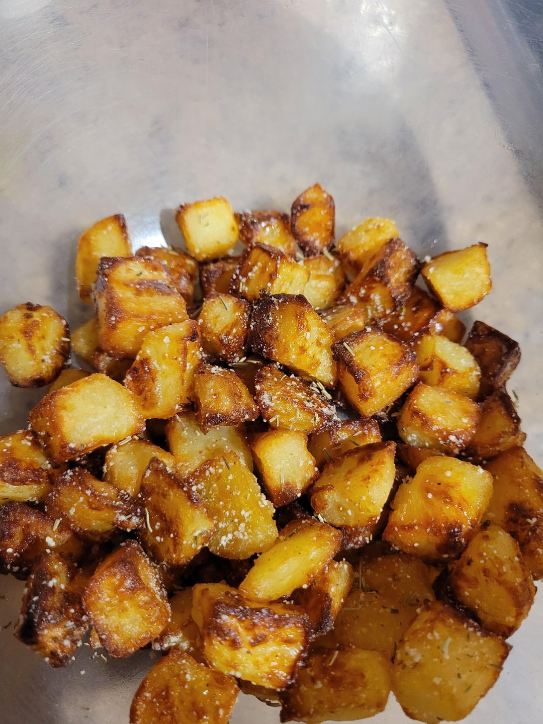 [Homemade] Crispy cubed potatoes with rosemary, thyme and parmesan