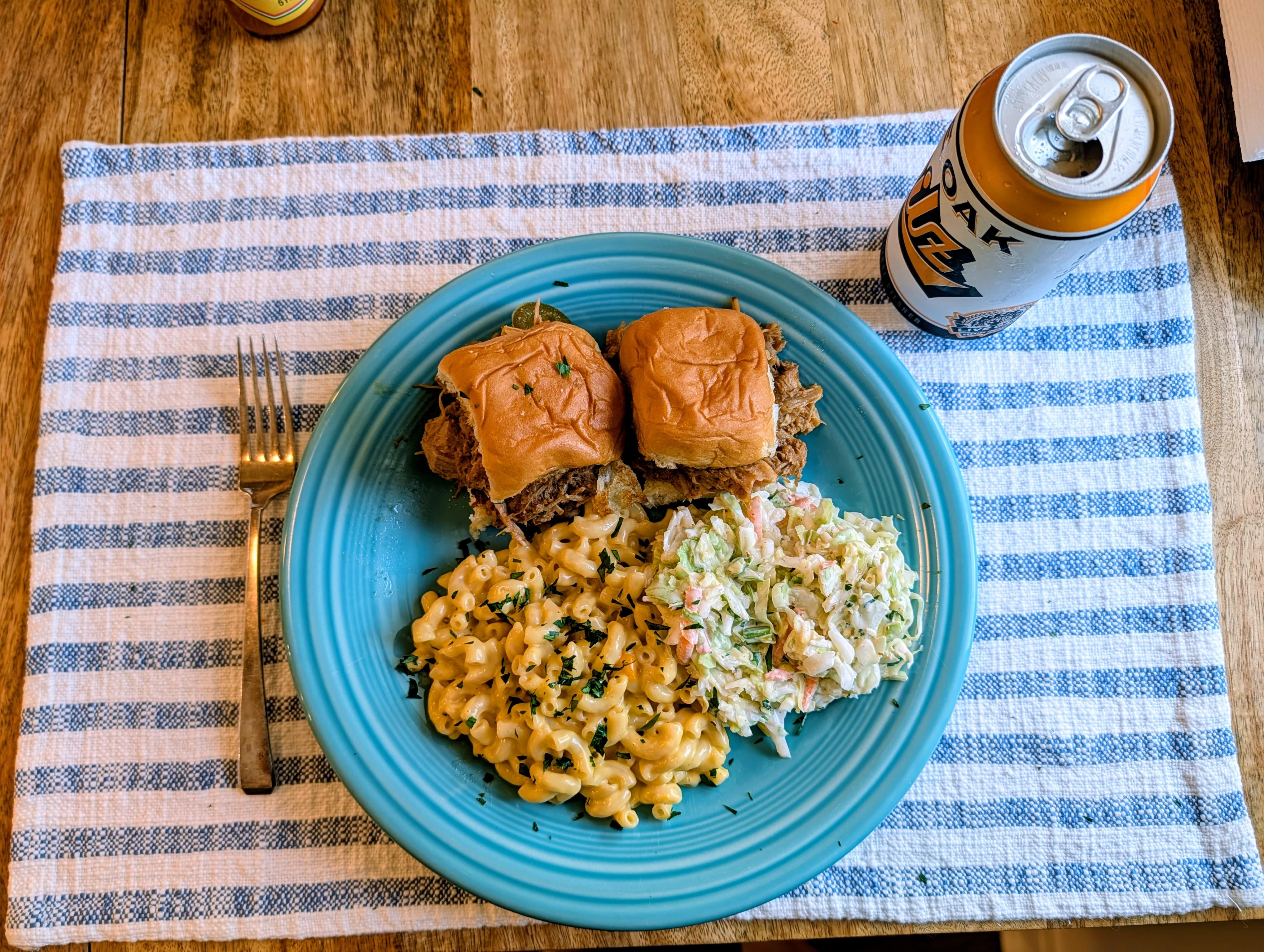 Pulled pork sliders with mac & cheese and a generous portion of schlaw by Dusty_Old_McCormick Dinner Tonight Tonight's Dinner