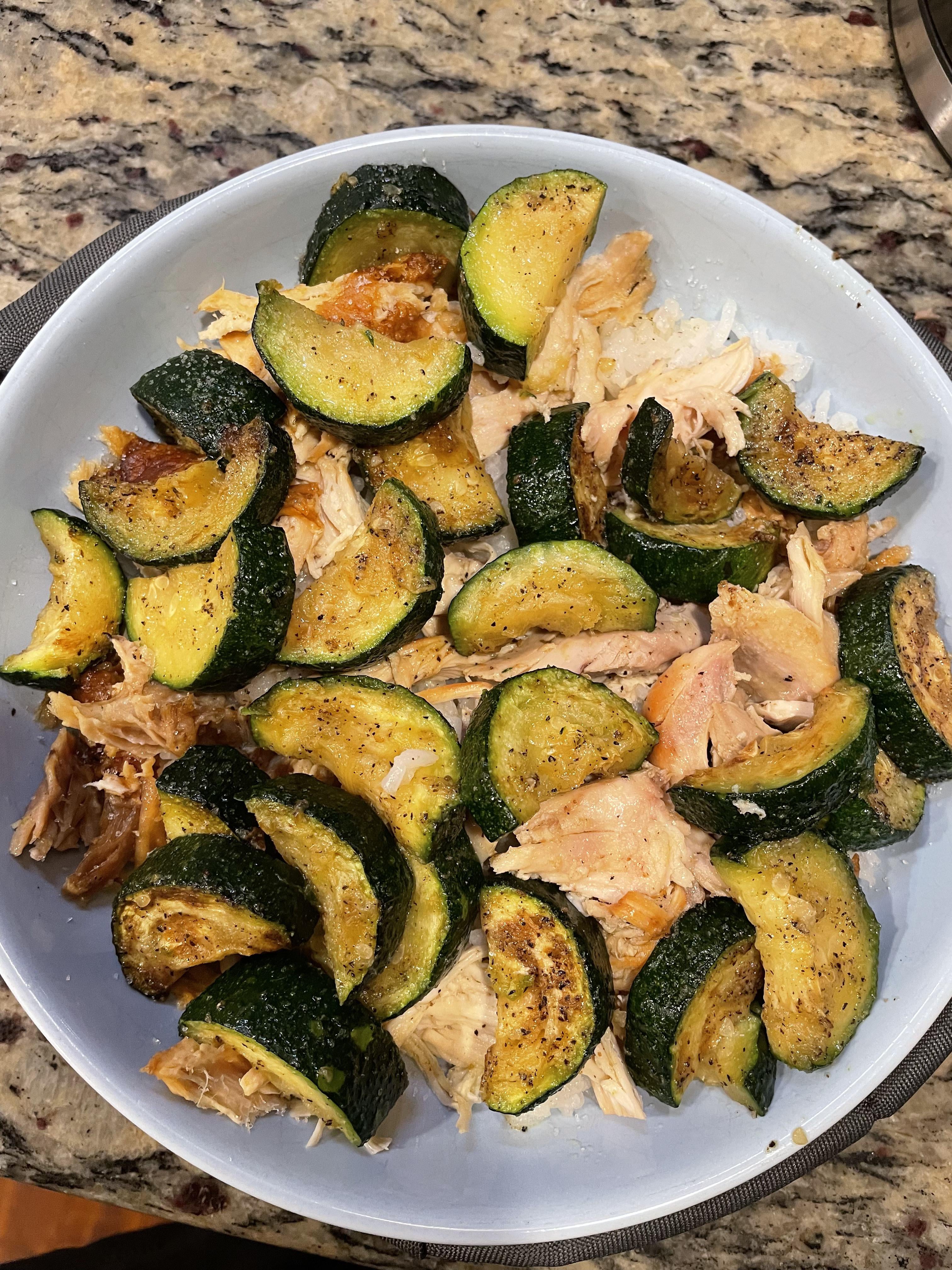 neckbeardsghost on March 26, 2026 2:17 am Not the most impressive looking meal, but it’s simple and delicious. I pan seared the zucchini with olive oil, salt and pepper and a little bit of garlic powder. Rotisserie chicken came from Costco.
