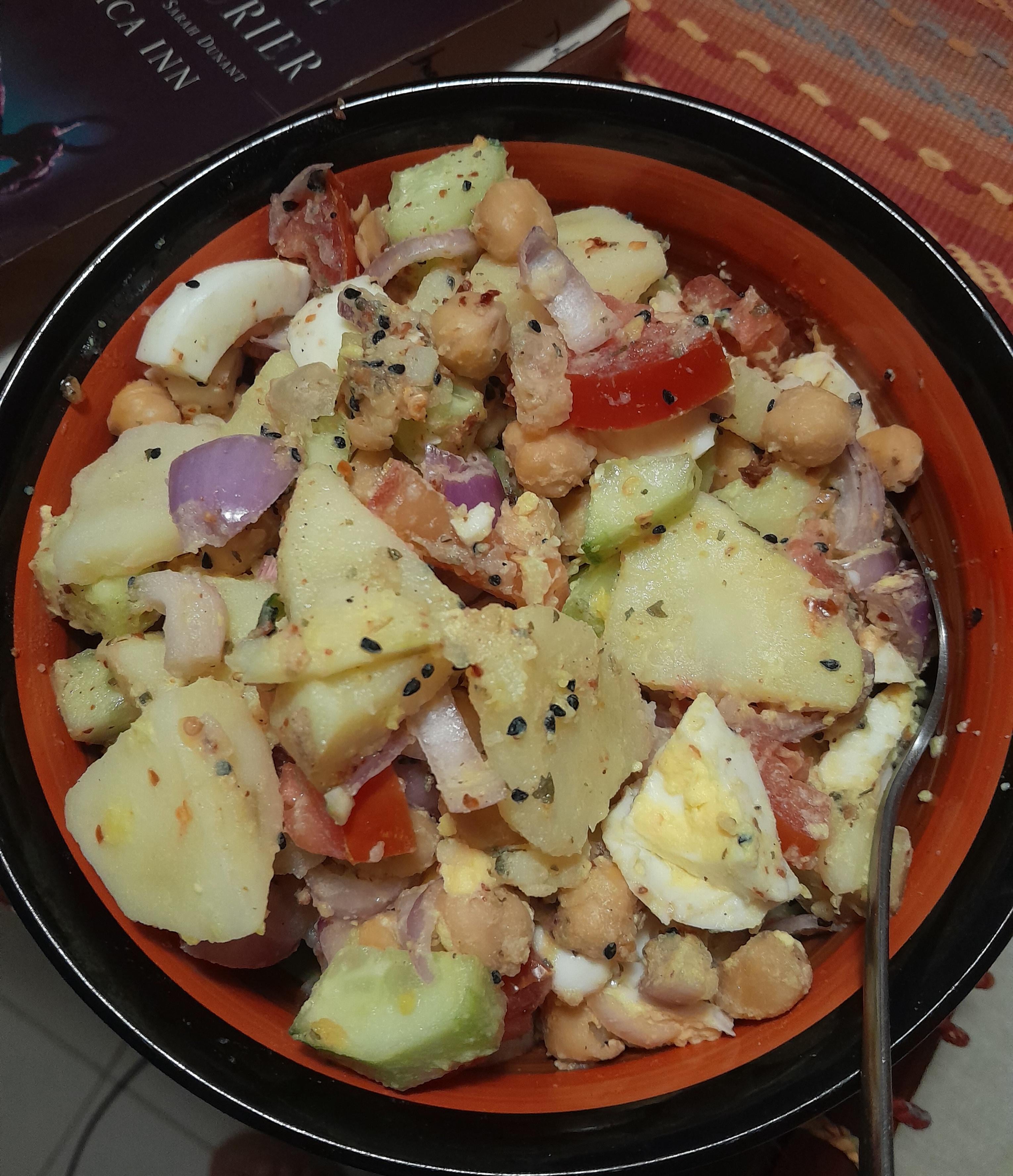 I love this salad so much, I eat it almost every other day. It's around 500 calories without the chicken here. Sometimes, I add some chicken chunks for the extra protein hehe. Otherwise, it's vegetarian friendly!