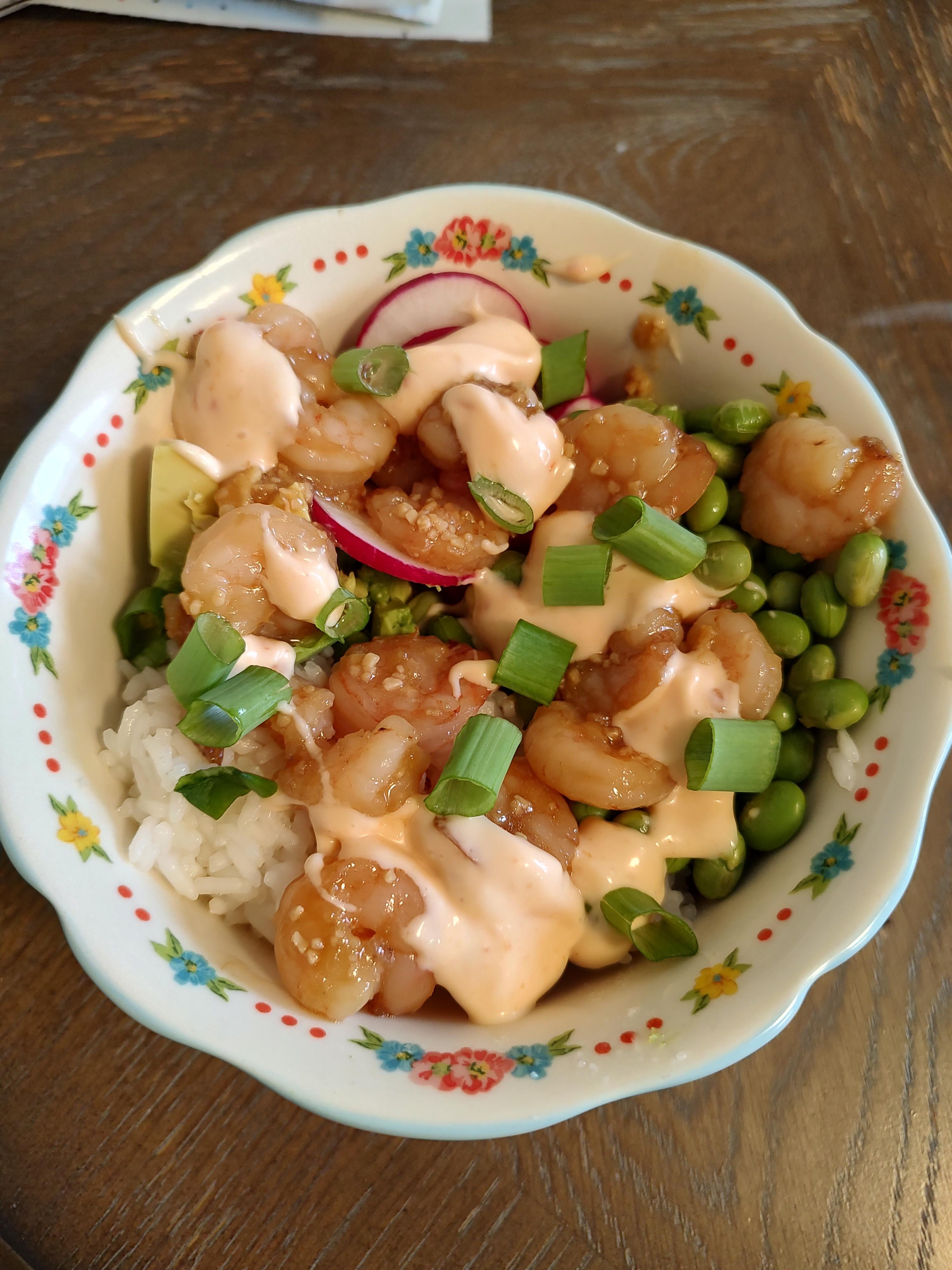 I can get them around 300-400cals, it depends on what I want to add. Here I made it with: Shrimp, white rice, edamame, radish, avocado and spicy low cal mayo 😋 you could probably sub the rice with something else, but I usually just do a small serving of it and bulk with more veg.
