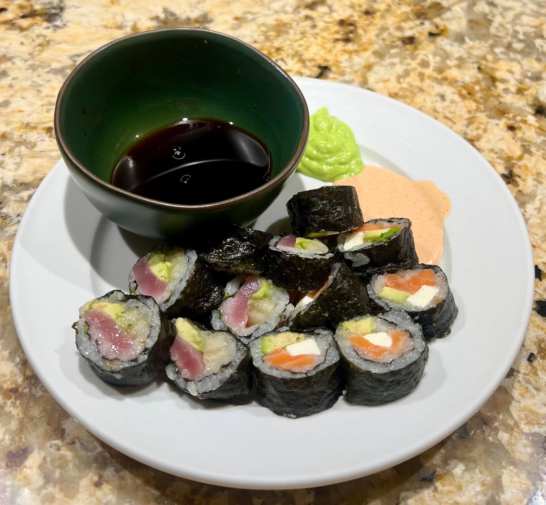 two California rolls and one Ahi w/avocado, gaya melon, cilantro and lime. in my sushi era by Exktvme4 Dinner Tonight Tonight's Dinner