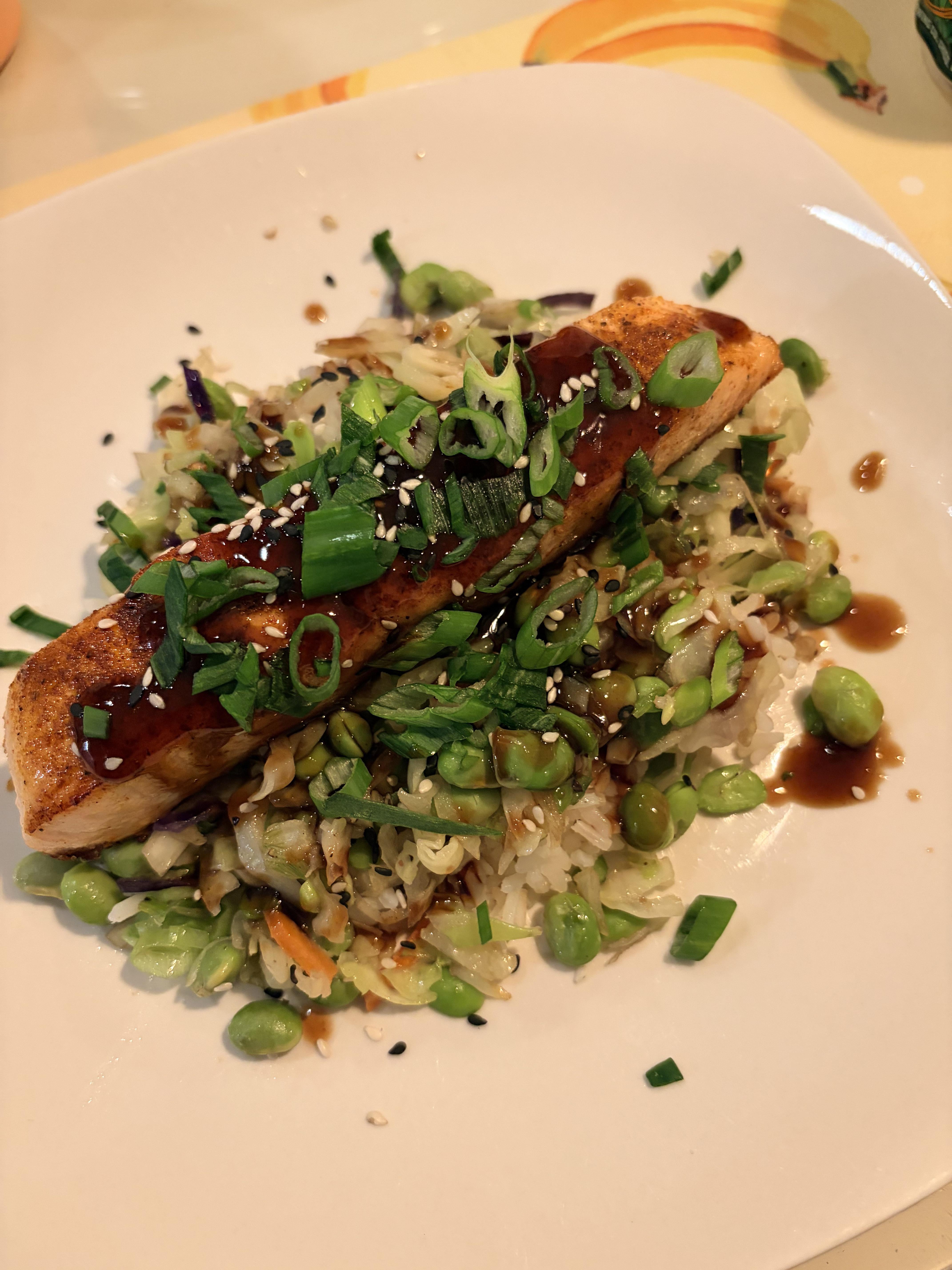 Hus made salmon. (He doesn’t even like salmon. He made it for me. 🥹)